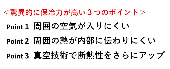独立気泡フォーム断熱材で空気が通るのを防ぎ、断熱性能を向上させています。また厚い断熱材を使うことで型崩れを防ぎ、中にものが入った状態でも安定して置くことができます。