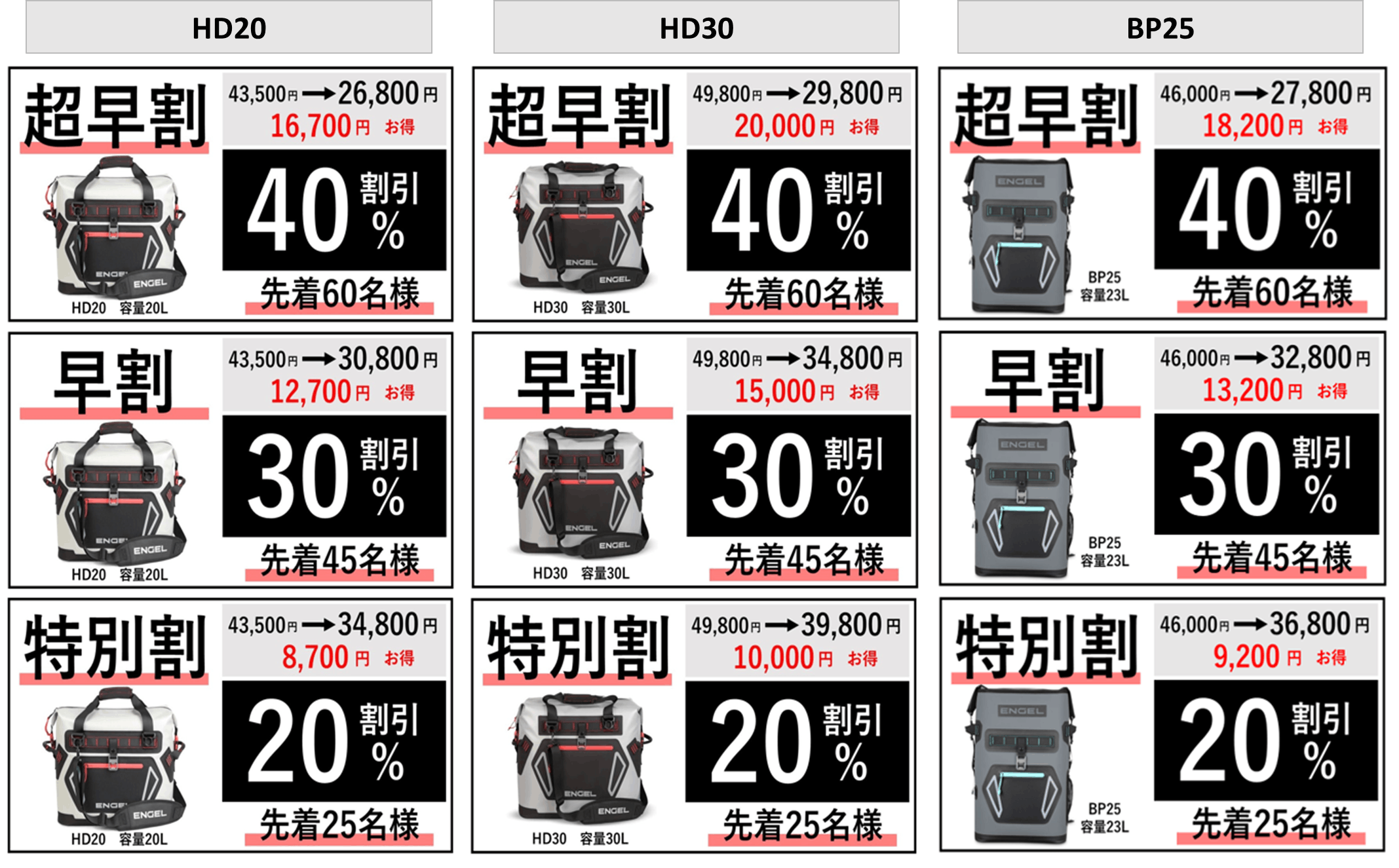 割引:超早割40%OFF、早割30%OFF、特別割20%OFF