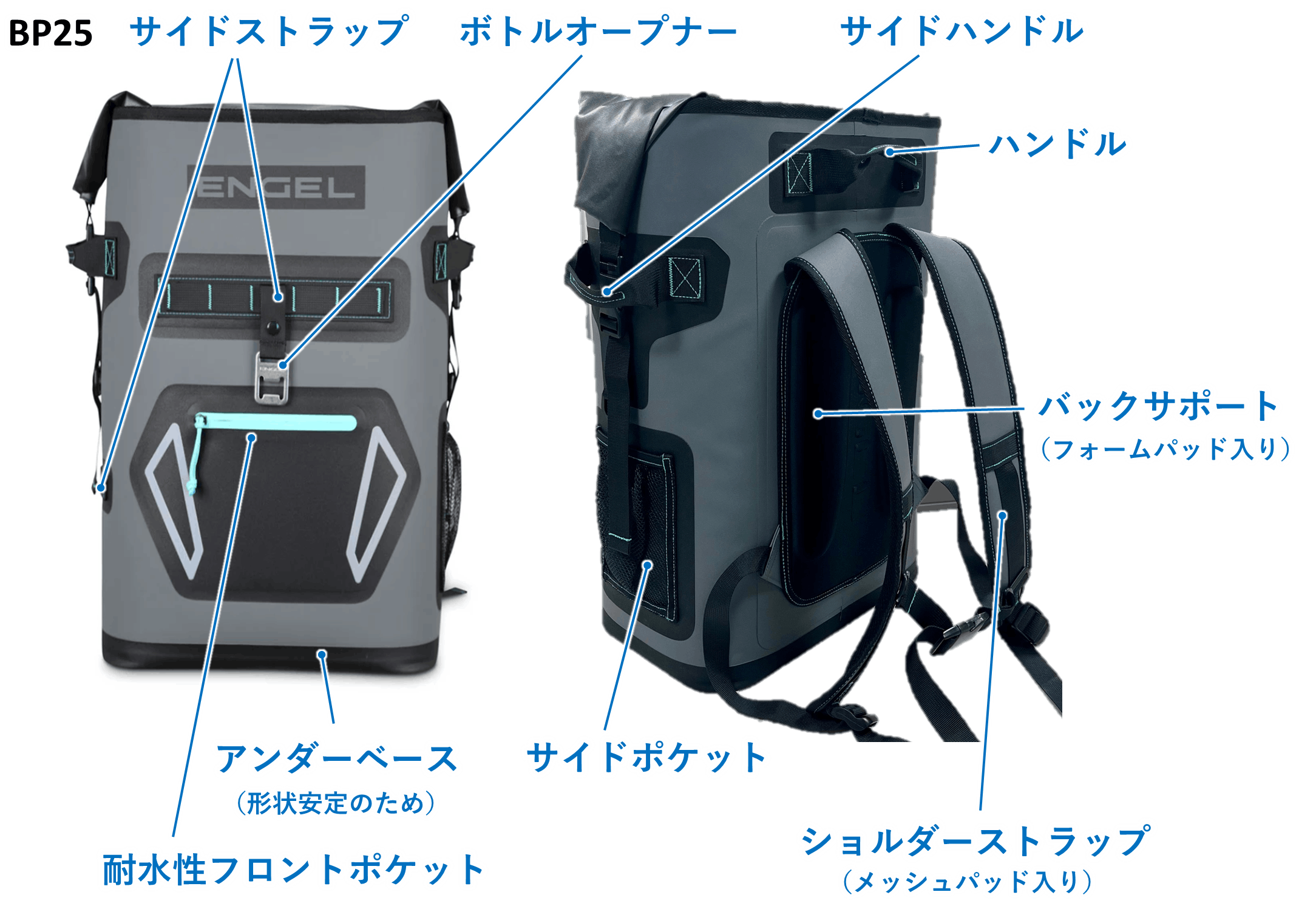 ※BP25のトップの開口部はジッパー式ではなくロールトップ式となりますのでご注意ください。