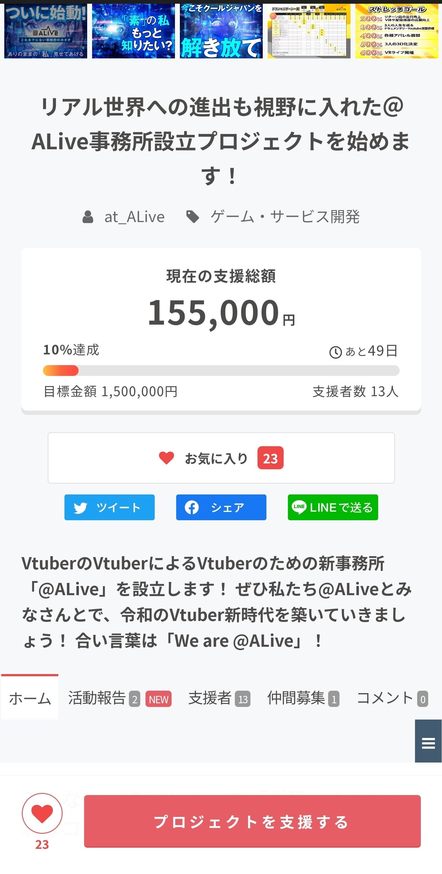 クラウドファンディング開始3日目にして目標達成率10%を達成することが出来ました!