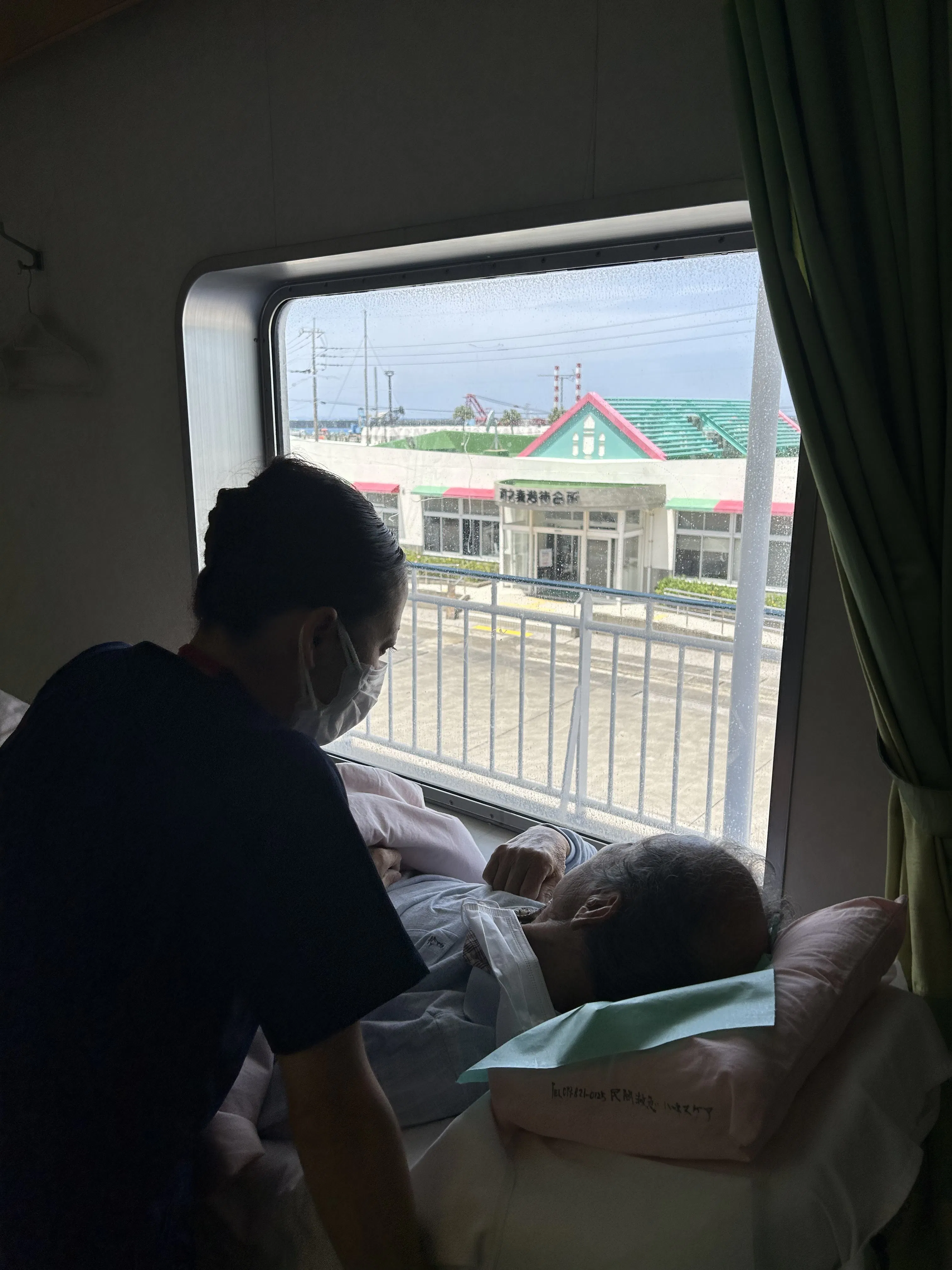 ↑朝6時出発から約5時間の航海を経て種子島到着の瞬間 / フェリー船内・弊社看護師同行