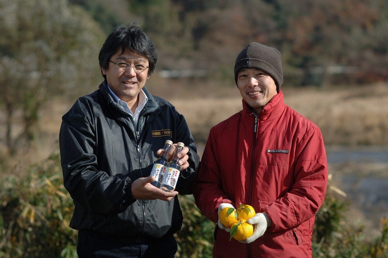 その後、亀岡市保津町のまちおこし団体と出会い、試行錯誤の末に「保津川柚子サイダー」が完成しました。