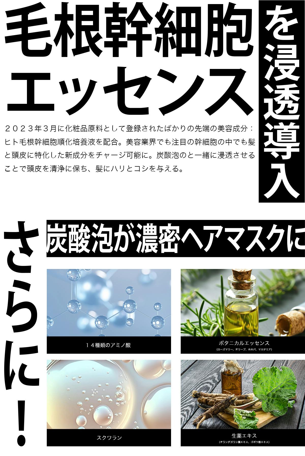 清浄になった頭皮と髪に浸透する美容成分は最先端の「毛根幹細胞」由来成分を厳選。