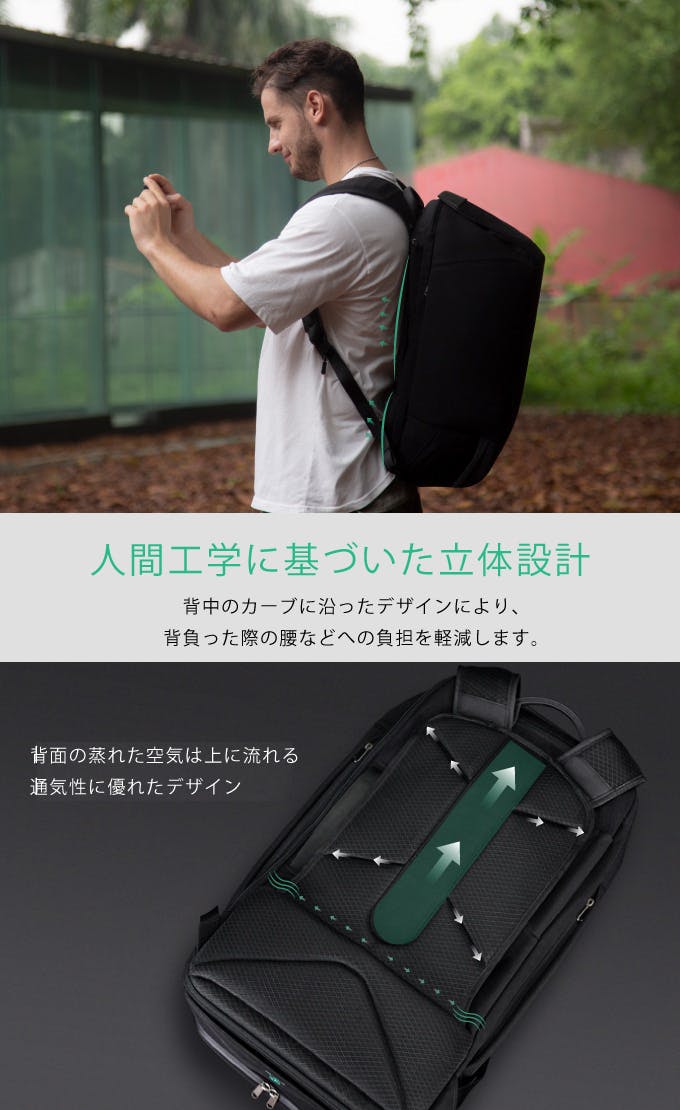 過去最大容量の45L 、約一週間分の荷物を収納できます。スーツケースのように三層構造で仕分けができ、TSAロック・ワイヤーロック・不正開閉防止ファスナーの3重セキュリティで防犯対策はバッチリ!さらにストラップはAirCellを使用しているので、荷物の重さが均等に分散されて背負いやすいです。 重たい荷物を手に持たなくていいので、ストレスフリーな移動時間を過ごせます。