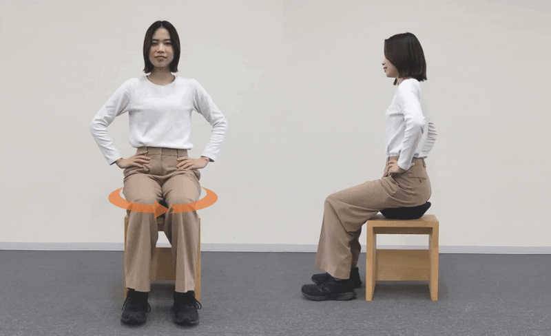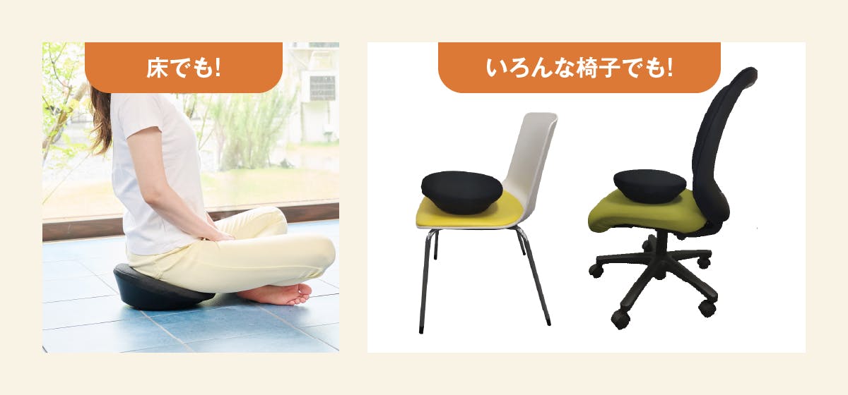 意識して運動しなくても、座ることで不安定さを感じられ、少ない動きで簡単に骨盤ストレッチが行えます。