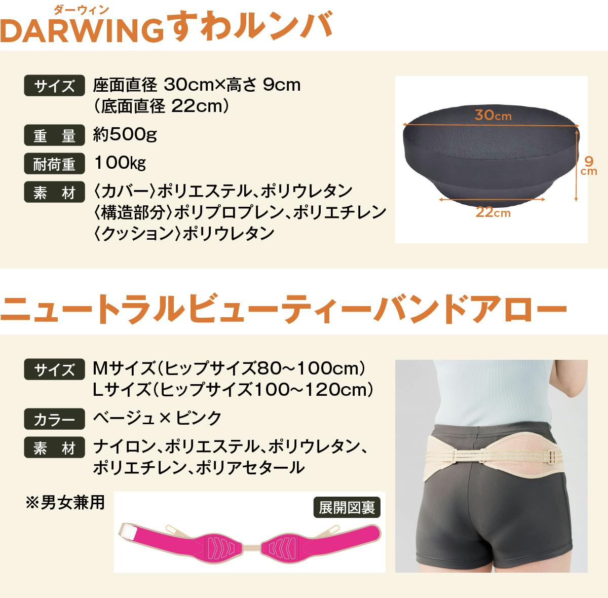 DARWING(ダーウィン)すわルンバで骨盤周りの筋肉をほぐして、ニュートラルビューティーバンド アローを着けて骨盤を安定させることで、腰のトラブルだけでなく、バランスの取れた姿勢へ導くことも期待できます。