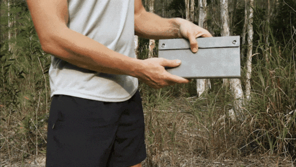 シンプルなデザインでスタイリッシュな外観。バッグに入れたり掛けることで、どこでもソーラー充電を行い充電することが可能です。