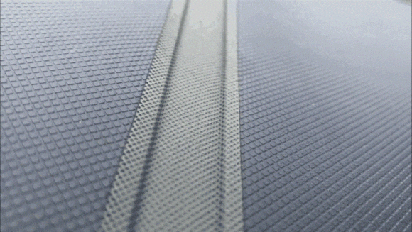 表面がハイグレードのフィルム素材を採用。フィルムコーディングとソーラーパネルの間の結合部が従来の縫製工程ではなく、革新的な熱間圧接手法を取っているため、ソーラーパネルは縫い目がありません。また、外観が美しく防塵効果をもたらすと同時に使用寿命も延ばしてくれます。