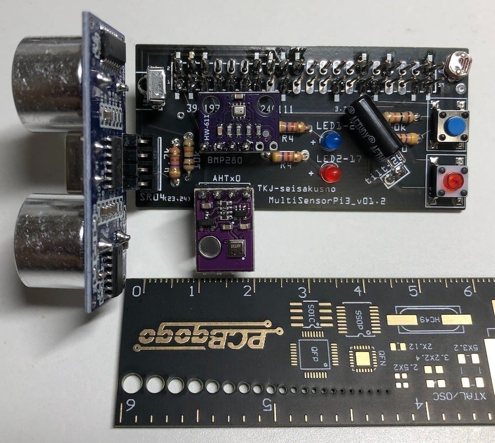 本基板にあるセンサー類を使えるようになると・本基板での気象観測データロガー・超音波測距での扉開閉管理、車等の駐車管理、トイレ使用管理等々・明るさセンサーと超音波測距を組み合わせての在室管理など、アイディア次第で結構実用的なものが作れるようになります。