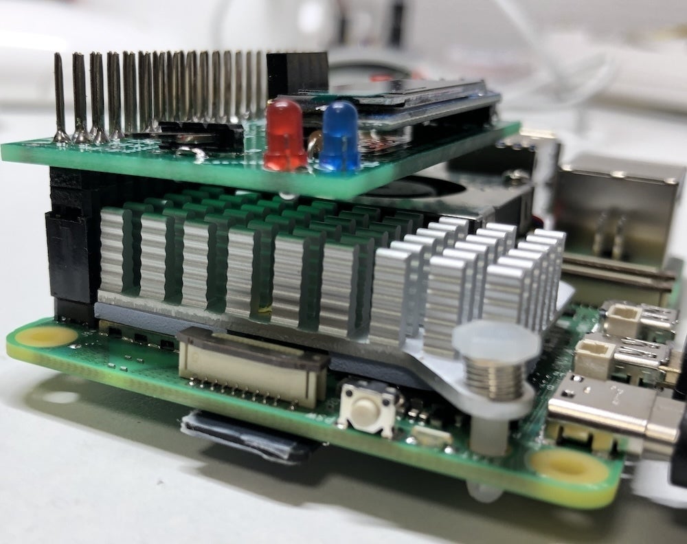 Pi5は純正のアクティブクーラーを付けられる方が多いと思いますので、高さのあるピンソケットを使用していますので、ファンと干渉せず、装着が可能です。