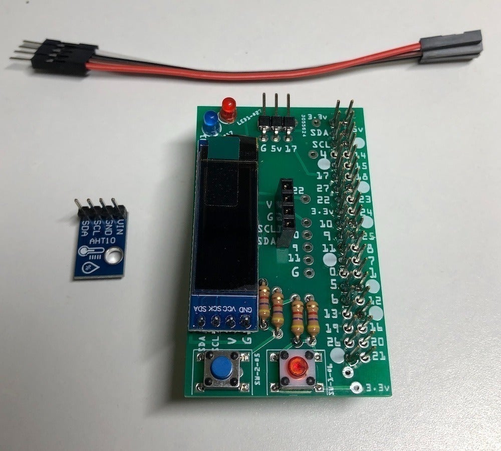 おまけで、温度・湿度センサーをお付けします。AHTをソケットに装着した状態。
