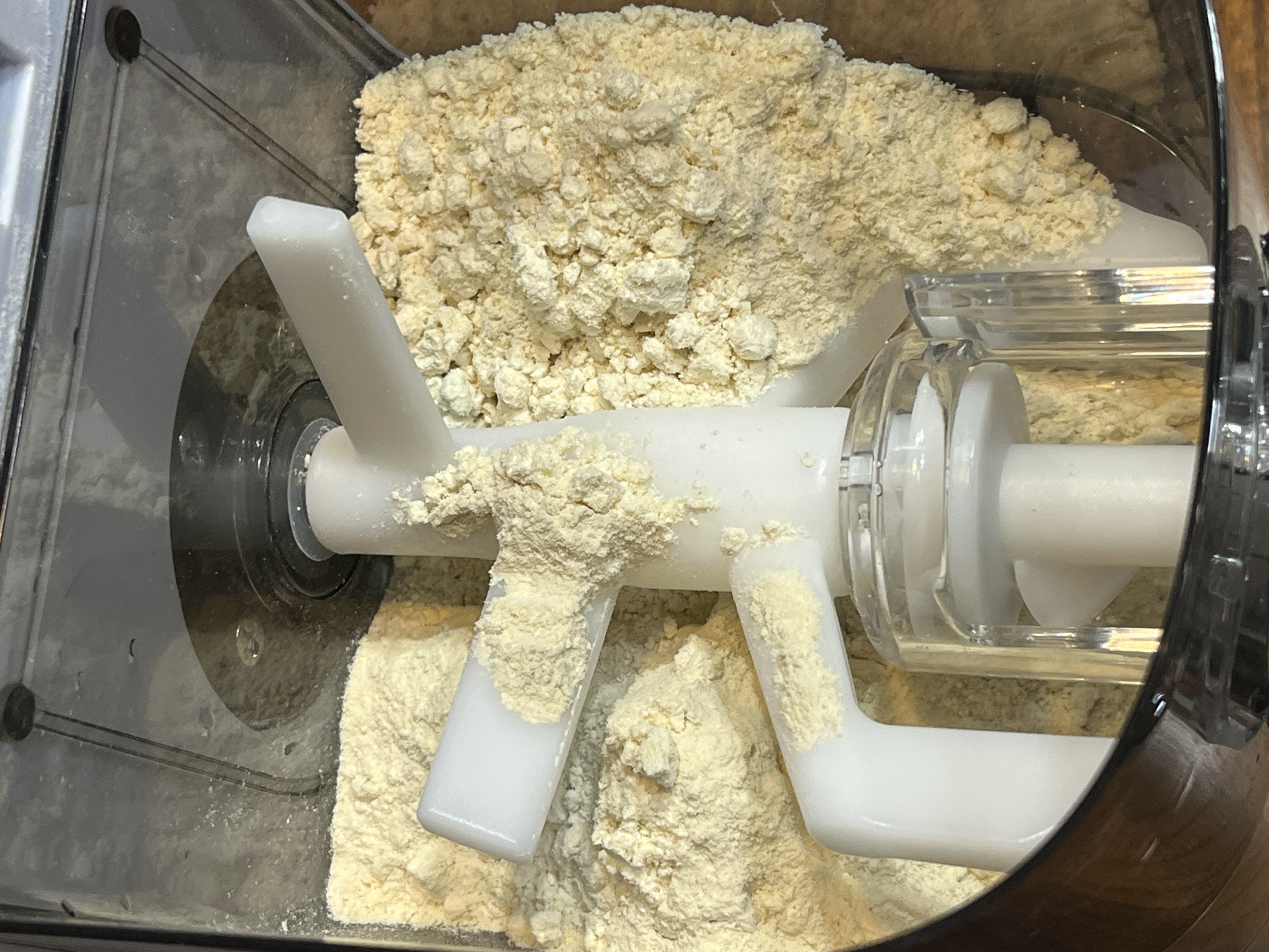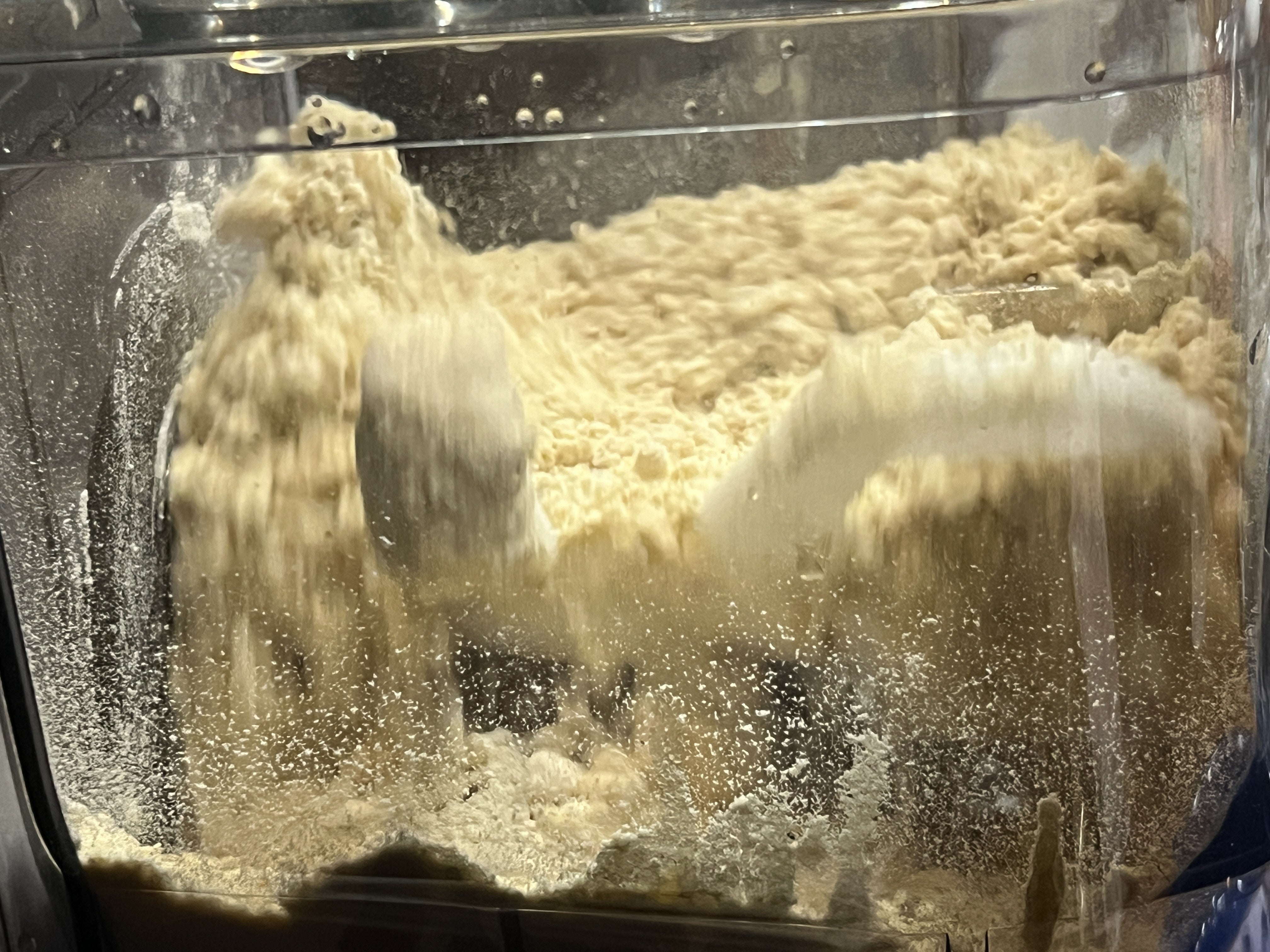 全体的におからがまとまっておらず、水分がかなり足りないようだったので、段階的に加水していき、最終的に70mlほど追加しました。