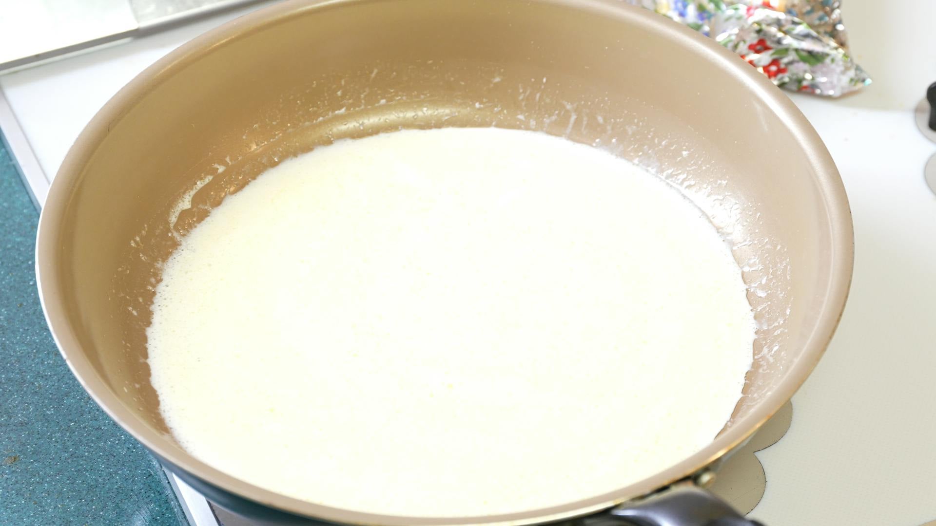 ソースはバター、生クリーム、塩で味をつけます。胡椒は麺とからめる直前に振ります。