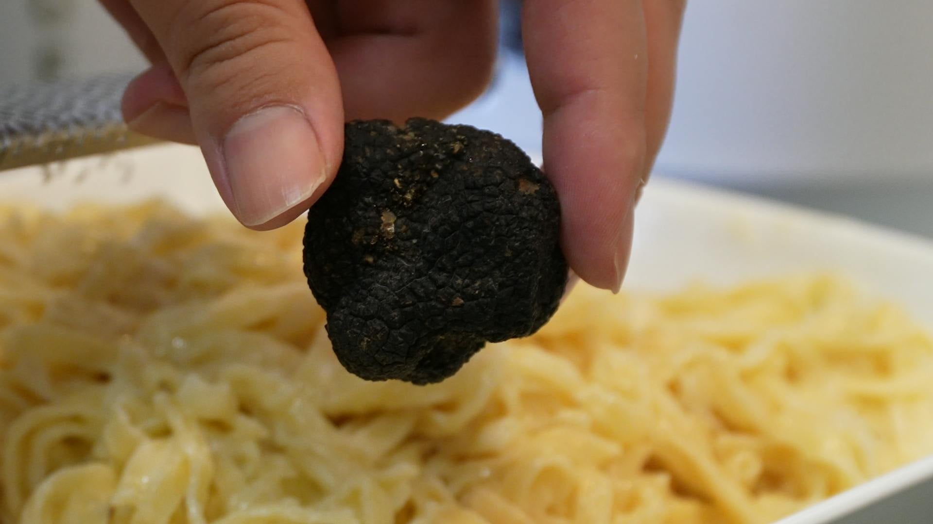 トリュフの香りがしてきました・・・!ここでいよいよ生のトリュフの登場です!