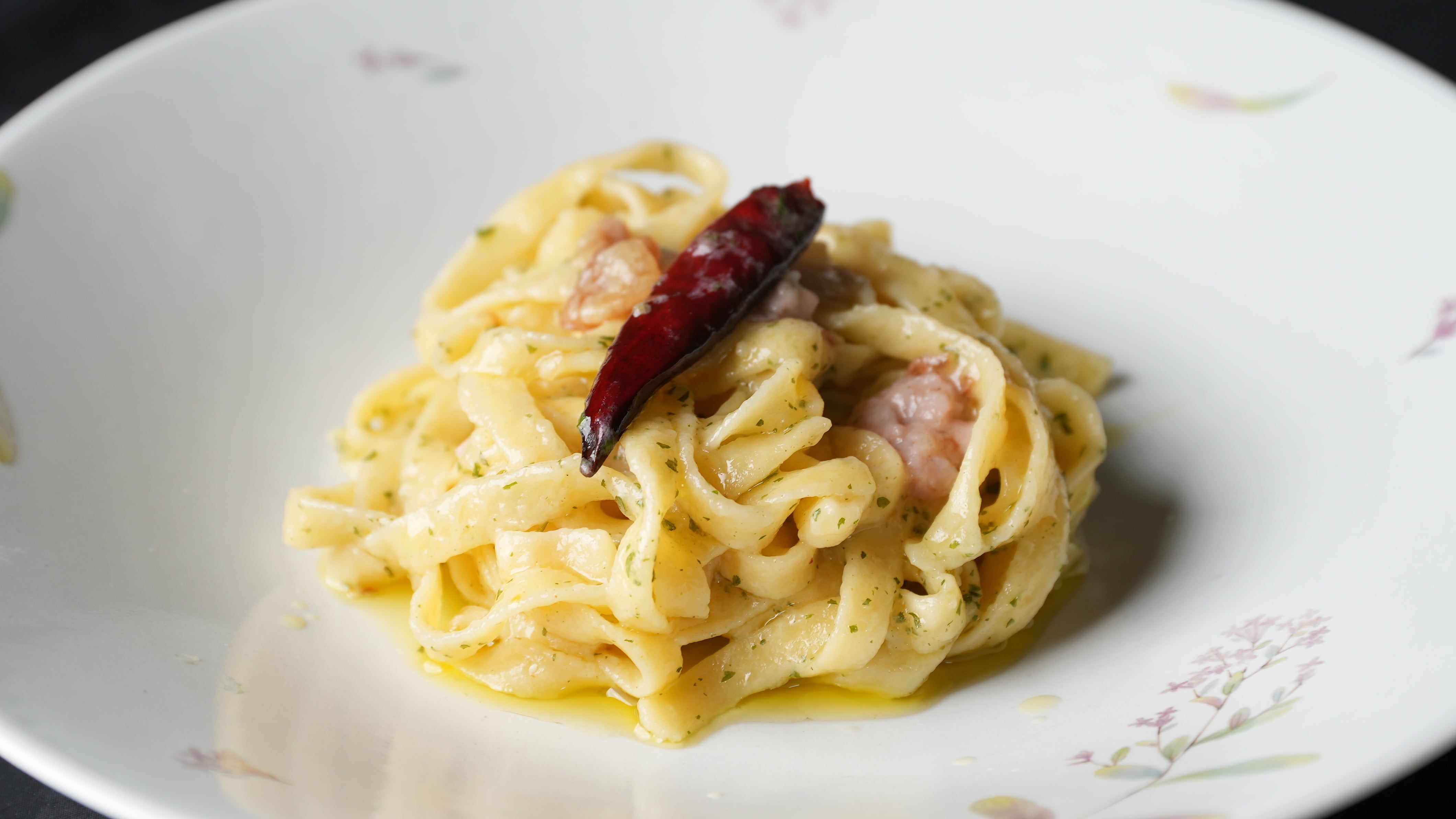 支援者の皆様、並びにご興味を持って頂いている皆様この度は全自動生パスタメーカー「EF-PM02」をご支援、応援いただきまして誠にありがとうございます。 本製品は粉から全自動で生パスタを作れるのが強み!そこで、お店でもなかなかお目にかかれないハーブを練り込んだハーブパスタにチャレンジしました! とにかくパスタソースに欠かせないハーブ。一方でハーブが香っている部分と香らない部分のムラもできやすく「もっと渾然一体となったような香りを出せないのか」というのは私のパスタ道の課題でもありました。 それではさっそくテスト環境のご紹介です。 【テスト環境】製麺機:EF-PM02強力粉:160g(付属カップすりきり一杯)デュラム粉:160g(付属カップすりきり一杯)卵水:130ml(卵2個、加水率39%~40%)オレガノ粉末:10g 今回使用したハーブはこちらのオレガノ粉末です。形の残っている乾燥ハーブは押し出し口で詰まる可能性を考慮して粉末を採用しました。 麺は定番の強力粉:デュラム粉の1:1麺でいきます。 材料を投入し、スイッチオン。全自動製麺を開始しました。生地の状態は若干水が多め。 オレガノ粉末が入った分10ml卵水を増やしたのですが、この様子だとハーブ粉末はほぼ加水率に加味しなくても良さそうです。 そうこうしているうちに麺が出てきました。思ったよりもしっかり色がついていますね。 今回は320gやったので製麺時間は15分ほどで製麺が終了しました。実際に出来上がった麺がこちら。 セモリナ粉特有の明るい黄色ではなく、想定よりもハーブの色がしっかりとのっています。 茹でてみるとお鍋からオレガノの香りが立ち上ってきました。 茹で上がりがこちら。 やや緑がかっています。そしてオレガノの香りがふんわり香ってきました。生パスタのモチモチ感も失われておらず、製麺は上々の出来です。 実験でソースを作る時間がなかったので、今回は市販のミートソースと混ぜて食べてみます。盛り付けがあまり美しくなく申し訳ありません。お腹が空いていたので先走りました。 通常の麺と明らかに違うのはやはり香り。 乾燥ハーブを直接ふりかけたような鮮烈さはありませんが、お蕎麦のように鼻の奥からオレガノの香りが柔らかく香ってきます。 非常に上品な味わいです。ハーブが強烈な主張を一切せずにソースを引き立てています。強い香りも好きではありますが、ソースとの一体感はなかなかに得難い味わいです。ぜひ他のハーブやスパイスでも試してみたいですね。 【ハーブ生パスタのまとめ】ハーブをふりかけたり、ソースに混ぜ込んだりするのでは得られない一体感のある上品な味わいで、リピート価値のあるパスタだと感じました。 市場にハーブを練り込んだパスタはあまりなく、また、ハーブやスパイス自体の種類も無数に存在し、既製品を探しても好みのハーブ、好みの形のパスタを手に入れるのが大変困難であるという点も考慮すると、全自動生パスタメーカーの強みを十全に活かしているレシピだと思います。 自作ならではです。 しかしながら、コストは高くつきます。今回使用した粉末ハーブも一瓶35g、600円と高額です。粉末となるとミキサーにかけてもなかなか家庭では再現が難しく、出来たとして手間がかかります。 ペースト状にする方法も考えましたが、水分が含まれた状態では加水率の調整が難しくなりますので、お料理中級者以上の方向けの方法かと思います。 贅沢な一品になりそうですね。 また、注意が必要な事項としてハーブやスパイスには摂取量に注意しなければいけないものが多く存在します。全部を網羅することは難しいため、取り扱いには相応の知識が求められます。 安全に食べるためには自分で調べたりする必要があるため、料理経験値の高さが要求される点はマイナスですね。 しかし、全自動生パスタメーカー「EF-PM02」の遊び幅を大きく広げてくれることだけは間違いありません。 【今後の展望】・ハーブが含まれた茹で汁をソースに加える・料理ごとにハーブやスパイスを変えた製麺を行う・ペースト状にしたハーブやスパイスでの加水率の変化を探る 【材料】強力粉:160g(付属カップすりきり一杯)デュラム粉:160g(付属カップすりきり一杯)卵水:130ml(卵2個、加水率39%~40%)オレガノ粉末:10g このような結果となりました。料理好きとしては非常にワクワクする結果となりました。 ぜひリターンが到着したら遊んでみてくださいね! (間違いなく深い沼にハマる方法だと感じていますのでほどほどに。。。) 今後もレシピと共に他の麺もテストしていきたいと思っております。引き続き応援よろしくお願いいたします!! 起案者