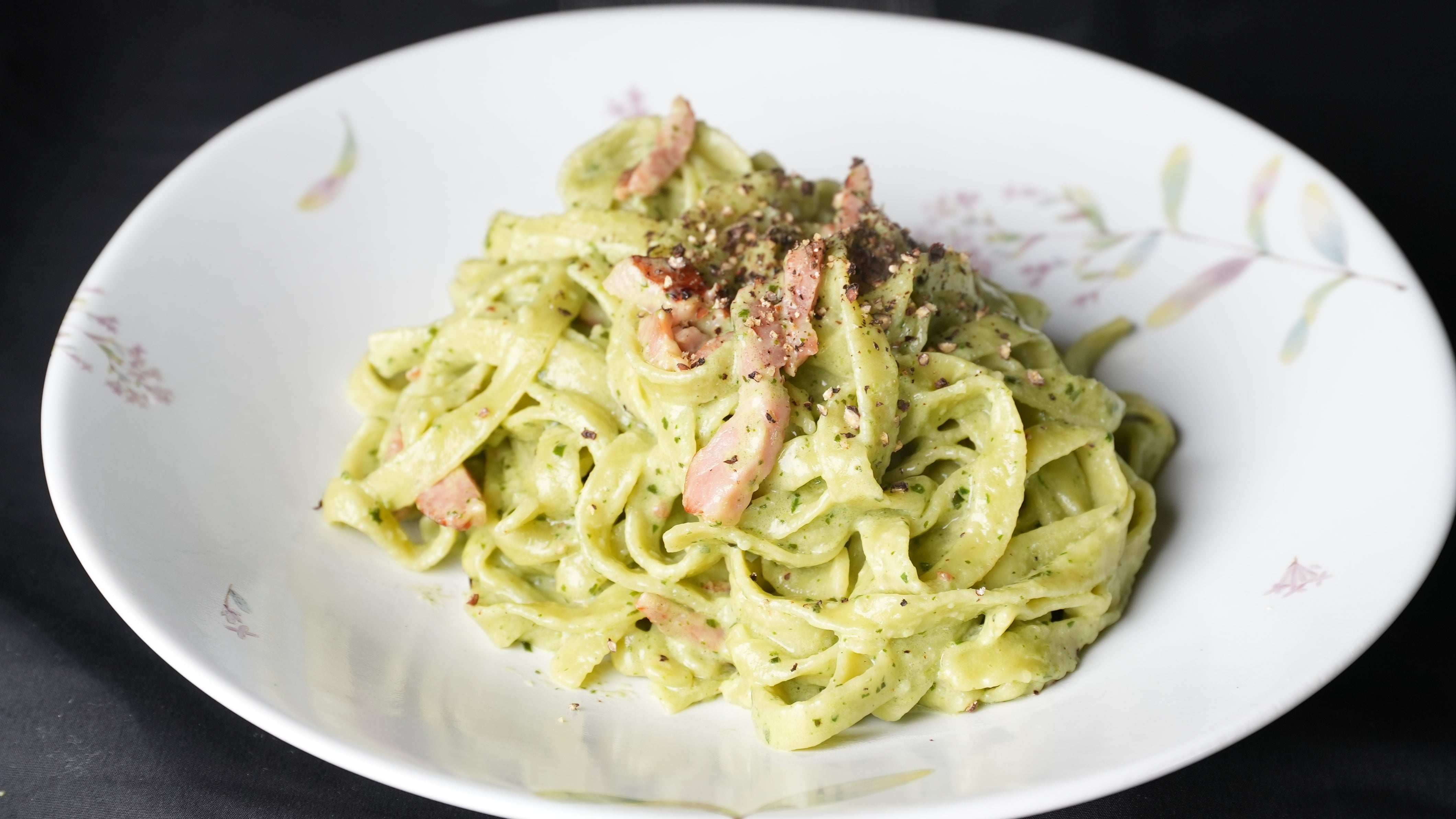 支援者の皆様、並びにご興味を持って頂いている皆様この度全自動生パスタメーカー「EF-PM02」が440万円の支援額を突破しました!皆様のご支援、ありがとうございます!ところで、先日LIFEHACKERに投稿されたこちらの記事はご覧になられましたか?モッチモチの生パスタに感激! コスパ最強の全自動生パスタメーカーでレストランの味を再現できたよ オレガノ粉末と燻製パプリカを使ったメニューが紹介されていましたね!しかし、起案者としては一歩先を行きたいところ。そこで、今回は手軽さ度外視で生バジルを使ったハーブパスタをご紹介します。手間ヒマは一旦置いて、思いつく限りの方法で最強のオリジナルパスタを作ります! 【テスト環境】製麺機:EF-PM02強力粉:160g(付属カップすりきり一杯)デュラム粉:160g(付属カップすりきり一杯)卵:1個水:70mlバジル:23.9g今回使用したハーブはこちらの生バジルです。当然このままではパスタメーカーには入りませんので、ミキサーにかけていきます。刻んでからミキサーに入れて、水70mlを入れて混ぜ合わせます。 かなり念入りにペースト状になるまで混ぜ合わせました。バジルの香りに混ざって草が発する野原の香りがしてきました(若干失敗の予感がしました)これを卵の入った計量カップで120mlになるように調整します。ミキサーには3分の1ほどのバジル液が残りました。 120mlで調整しましたが、生バジルに含まれる水分や、バジルを入れたことでパスタにどのような影響が出るのか未知数ですので、あくまで目安です。麺は定番の強力粉:デュラム粉の1:1麺で、幅広の平打ち麺でいきます。材料を投入し、スイッチオン。全自動製麺を開始しました。バジル+卵水を投入しますが、やはり粘度が高いせいでサッとは入っていきません。 最終的に水の投入口に少し残ってしまったので押し込みました。製麺自体は全自動が可能でしたが、最初に出てきたものが水分量が少ない感じがしたのでさらに20ml水を追加し、出来上がったものがこちらになります。 最初に出てきた麺がこちらです。水分が足りない感じがします。 次に水分を追加した麺がこちらです。かなり滑らかですね。 新そばのような薄緑になりました。この滑らかさを見るに生バジルを使った場合、バジルが入ったことによる加水率の変化は考えなくてもいいかもしれません。せっかくなのでこの生バジル生パスタ(言いにくい)をバジルクリームソースで食べてみました。 料理全体からふんわりとバジルの香りがします。麺を噛んだときもバジルの香りが鼻に抜けてかつて感じたことのないソースとのハーモニーを感じます。控えめに言ってかなりの高級感です。手間やコストを考えると、レストランで出すのはかなり厳しい、自家製麺ならではの一品でしょう。既製品を見つけるのはほぼ不可能だと思います。反省点としては・ミキサーがまだ甘い・パッセして滑らかにしたほうがいい・どうしても発せられる草の匂いの課題これらが残りました。他には時間がかかる、生ハーブは高いなど、なかなかハードルの高い一品になりましたが、特別な日の特別なパスタとしては申し分ない出来です。また、注意が必要な事項としてハーブやスパイスには摂取量に注意しなければいけないものが多く存在します。全部を網羅することは難しいため、取り扱いには相応の知識が求められます。安全に食べるためには自分で調べたりする必要があるため、料理経験値の高さが要求される点は変わらずマイナスポイントですね。【材料】強力粉:160g(付属カップすりきり一杯)デュラム粉:160g(付属カップすりきり一杯)卵水:120ml(卵1個64g、加水率約38%)バジル:23.9g(バジルは加水率の変化に加えない)このような結果となりました。他にはローズマリーで製麺して、肉の下に敷いたりすると面白そうです。皆さんもリターンが到着したらぜひ遊んでみてくださいね!終了まで残り僅かですが、引き続き応援よろしくお願いいたします!! 起案者