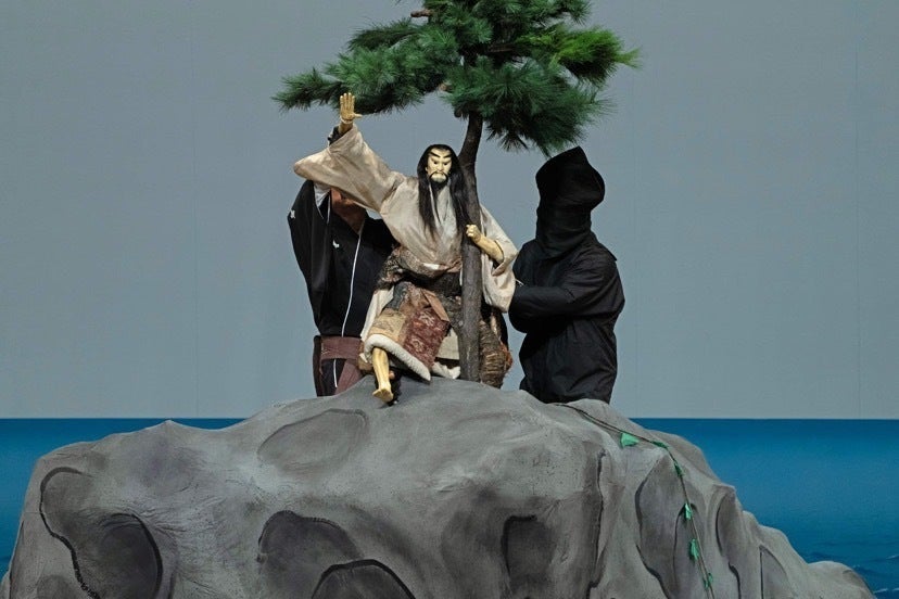 「平家女護島」で絶海の孤島に流された俊寛を遣う吉田玉男師=令和4年2月国立劇場小劇場にて