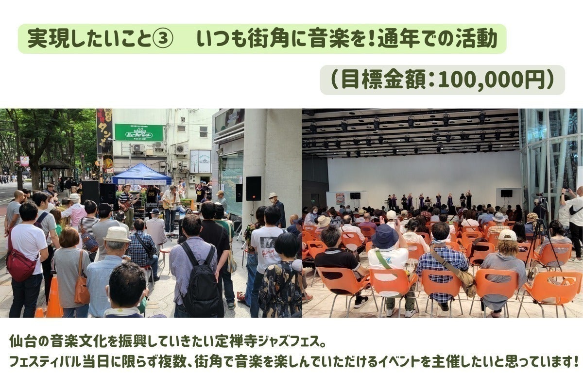 毎年9月に宮城県仙台市で「定禅寺ストリートジャズフェスティバル」という市民音楽祭を主催しています。