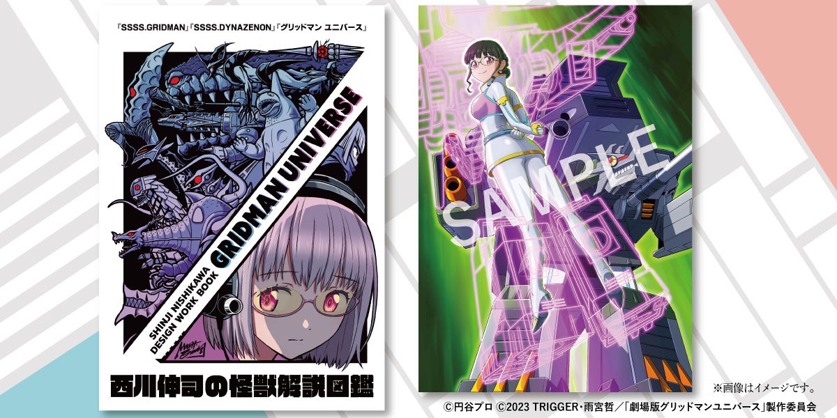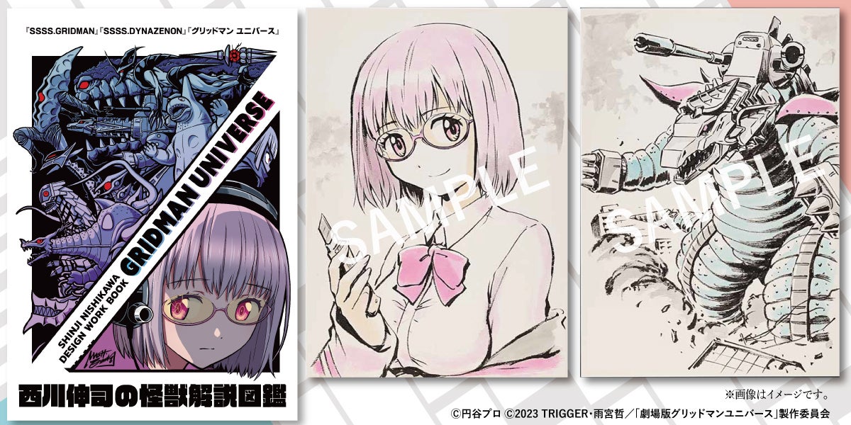 作品展用に西川伸司が描き下ろしたイラストを使用したB2ポスターが登場!作品展描き下ろしイラスト『グリッドマン ユニバース』 “サウンドラス合体!” ポスター』 と『西川伸司の怪獣解説図鑑』のセットコースです。