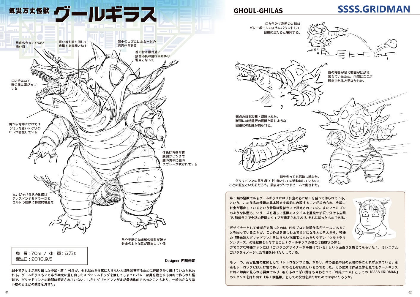 ・西川自身のデザイン以外の怪獣を図解で紹介:SSSS.GRIDMAN…アノシラスなど7体、