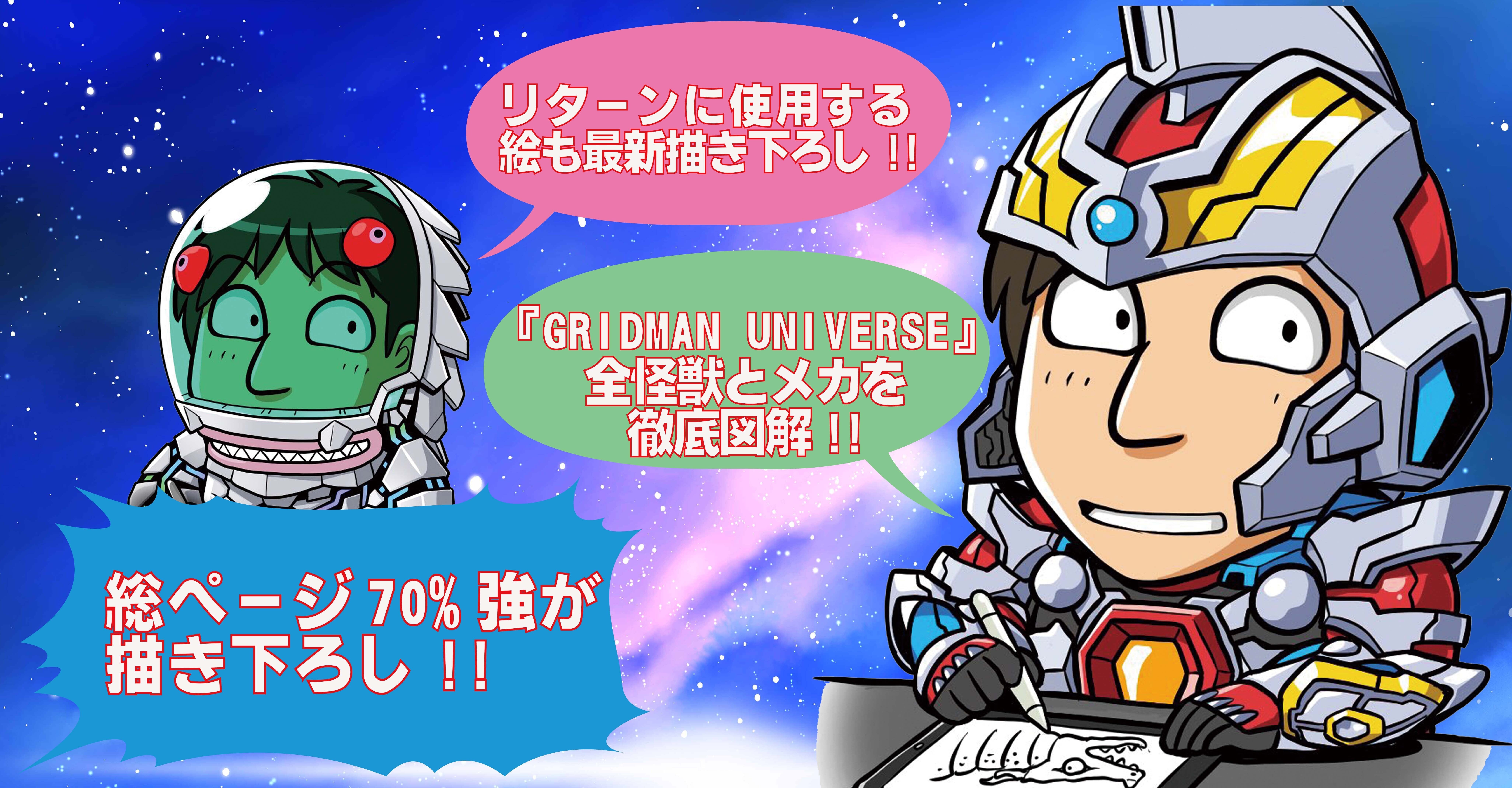 私は怪獣デザイナーとして参加してきたわけですが、劇中で描かれる怪獣の表現には、多くの特撮作品にデザインを提供してきた私でも唸らされるものがありました。そんな『GRIDMAN UNIVERSE』の怪獣デザインに焦点を当て、私の担当怪獣はもちろん、特撮界から召喚された多くのデザイナーによる怪獣の数々を漫画家と云う視点で、図解を中心に紹介や分析する書籍を発行するお話を頂きました。