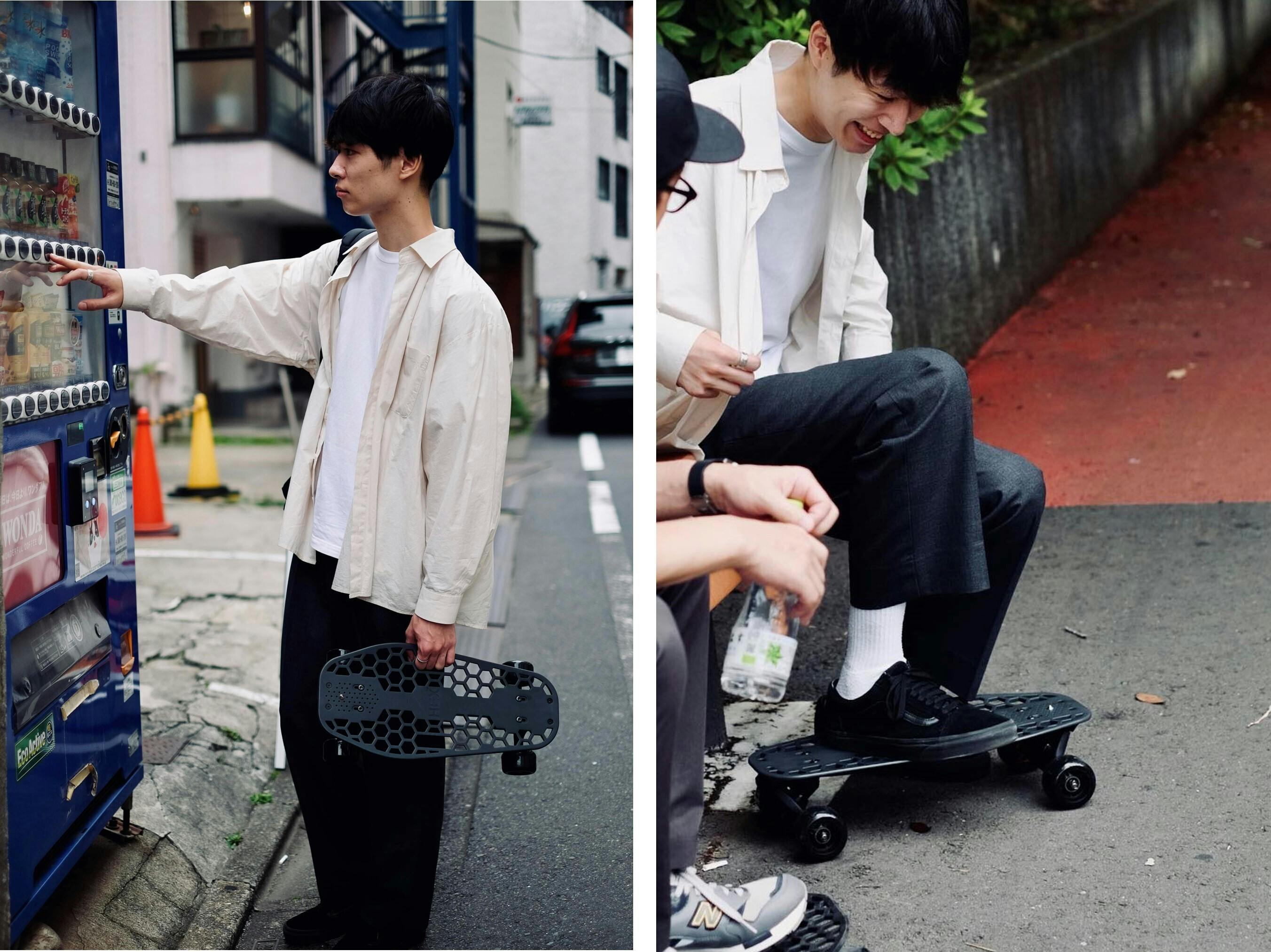 そこで身近な場所への移動を快適に行うためにスケートボードに着目しました。ただし、スケートボードはストリートカルチャーを彷彿とさせる見た目や、乗りこなすのに時間がかかるといった点で敷居が高い乗り物だという課題がありました。