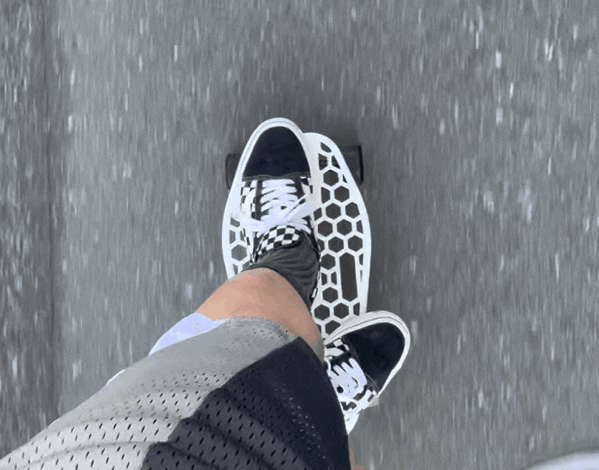 基本動作のプッシュ(足で地面を蹴ること)は慣れが必要です。一般的なスケートボードは後ろにも進むため未経験者は、プッシュ時にスケートボードが下がることで不安定さによる恐怖感を感じることが少なくありません。HEX™は後ろにさがらない特許申請構造で安定感があり、初めて乗る方でも乗りやすい構造になっています。