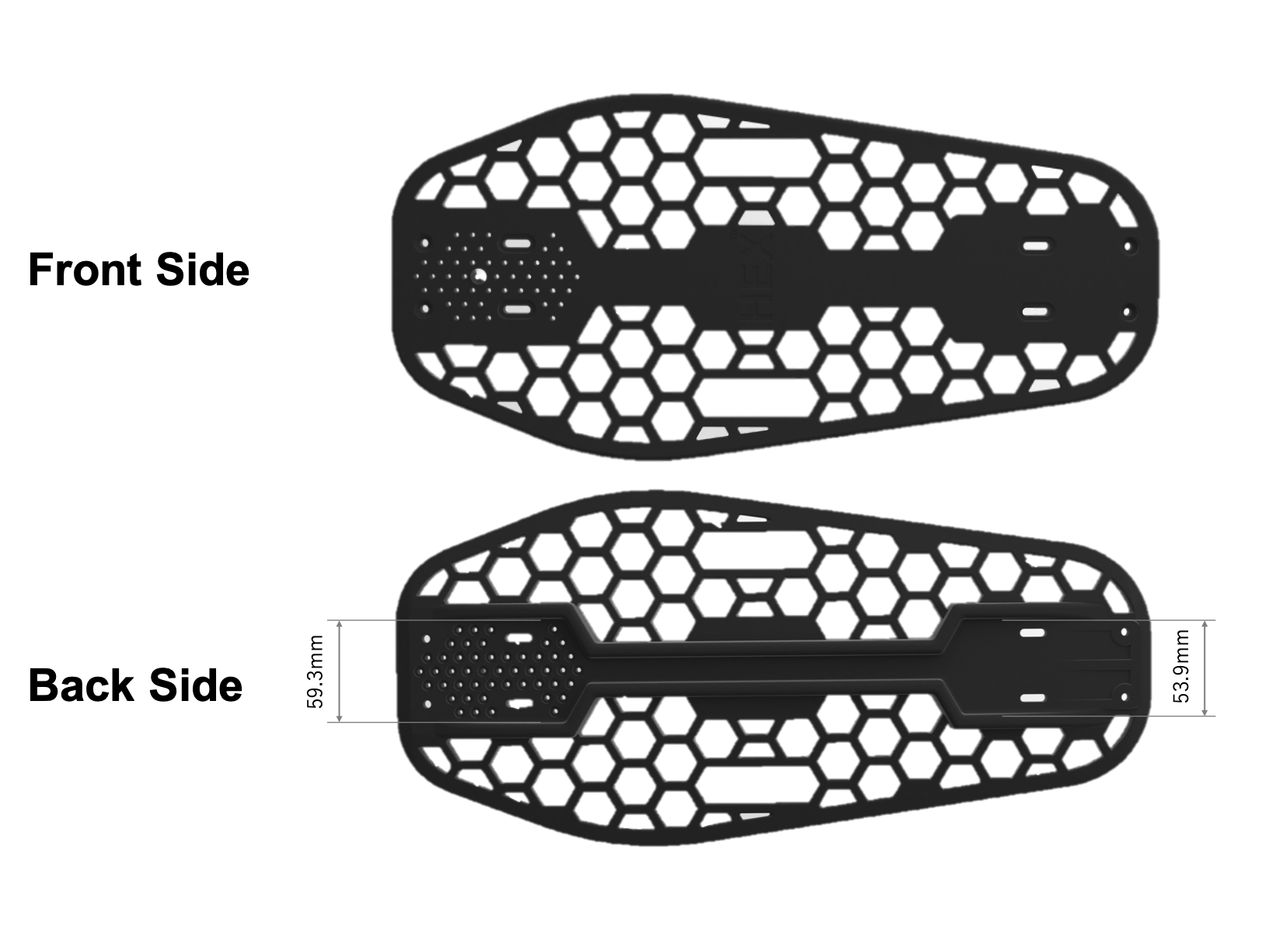 HEXのデッキは、片側に長穴を採用することで主流となっているニュースクールサイズのトラックと、稀に採用されているオールドスクールサイズのトラックの両方に対応しております。デッキとトラックを繋げるボルトは六角穴付きボルト 3mmを採用しています。デッキ背面には、補強リブがあるため手持ちのトラックをつける場合に干渉して取り付けられない場合がございますので、詳細は画像をご確認ください。