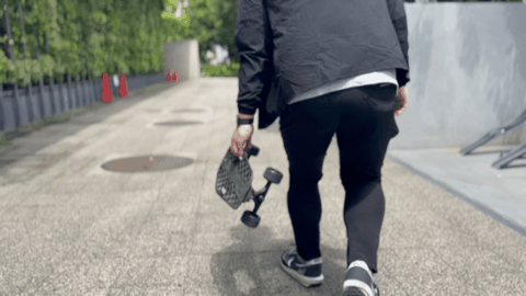 家から駅やコンビニ、カフェなど、歩いていけない距離でもないけど、ちょっと遠い。自転車だと駐輪場に止めるのが手間だと感じる。そんな、日常的な移動を気軽で快適なものにするために移動手段としてスケートボードに着目しました。昨今は、シェアサイクルや電動バイクの普及により、手軽で快適な移動手段が人々の生活により浸透しています。一方でシェアサイクルは乗ることのできるエリアが限られていたり、電動バイクは使うときに駐輪場から運ぶ手間があったり、駐輪スペースが限られていたりと、身近な場所へより手軽に移動できる手段があるのではないかと思いました。