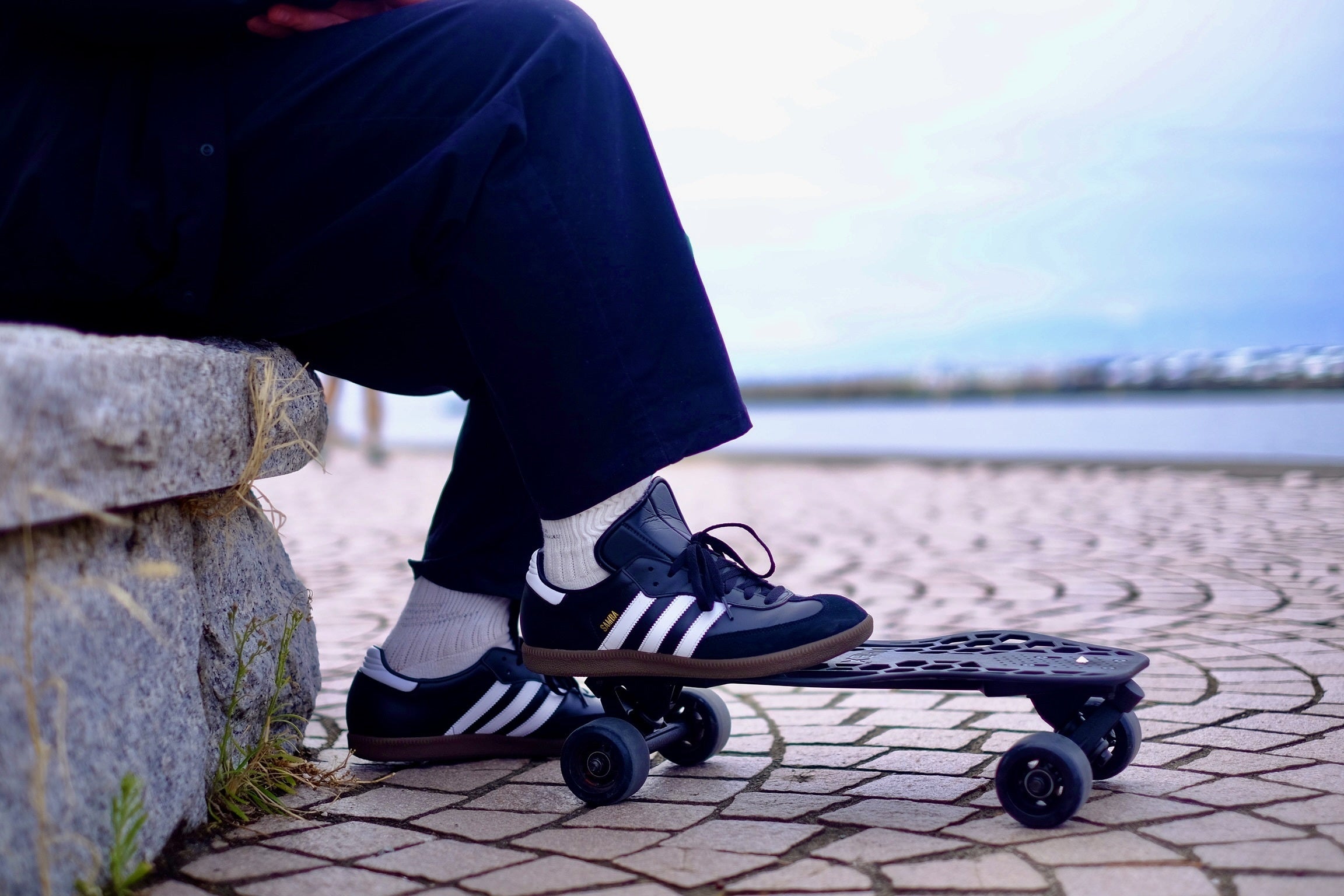 そこで身近な場所への移動を快適に行うためにスケートボードに着目しました。ただし、スケートボードはストリートカルチャーを彷彿とさせる見た目や、乗りこなすのに時間がかかるといった点で敷居が高い乗り物だという課題がありました。
