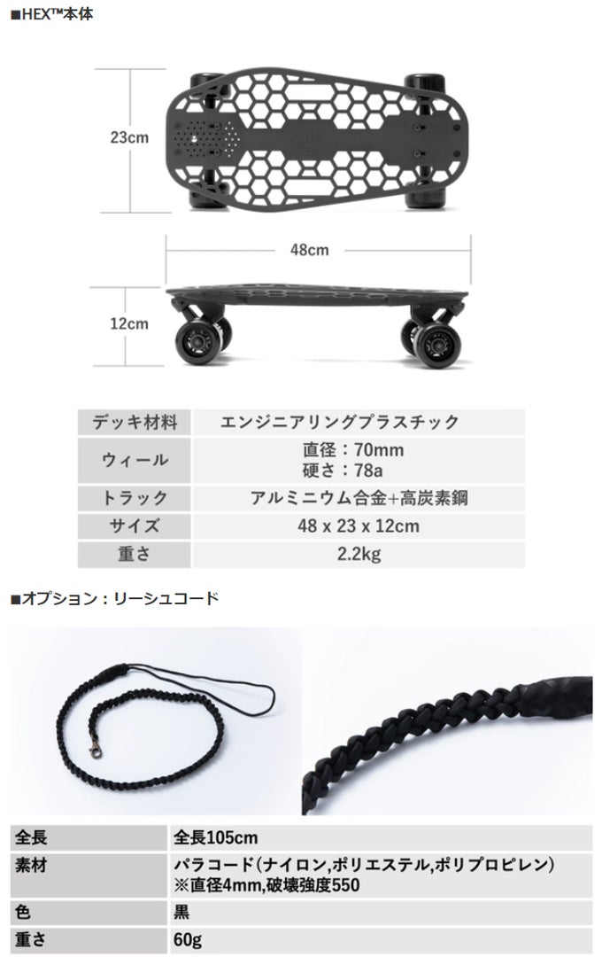 ※ページ内のHEXの画像や動画には、一部試作品を使用しております。リターンでお送りするHEXは、デッキ、ウィール共に色がブラックのものになります。