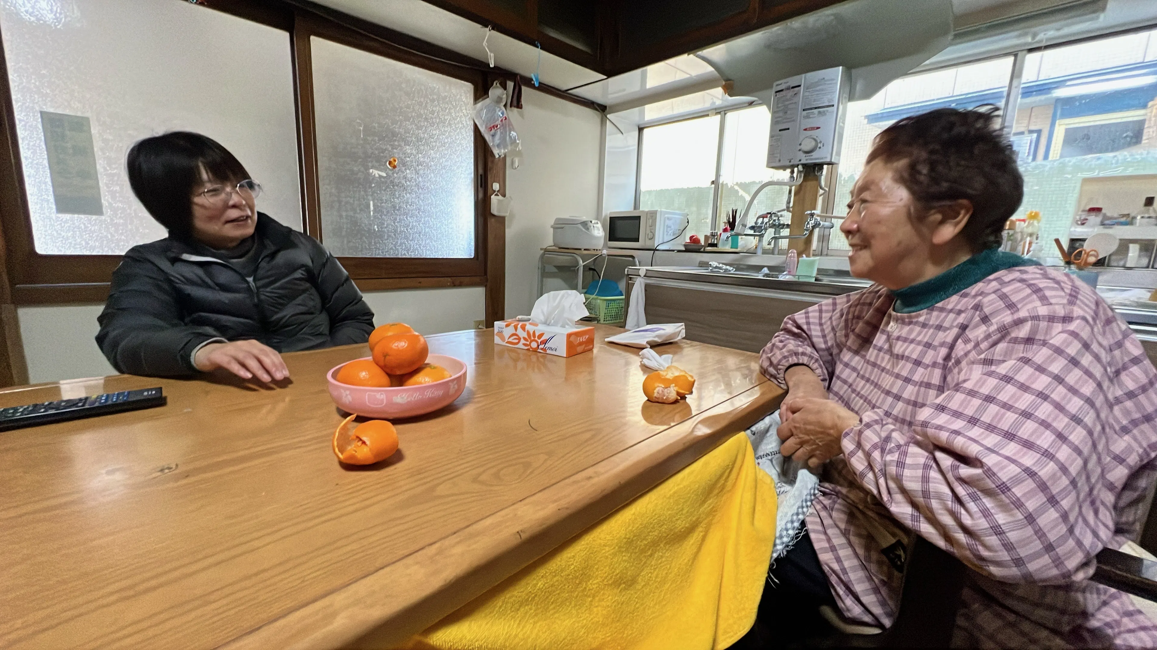 写真右がトシさん。いつもトシさんちでお茶やみかんを頂き和んでいます。