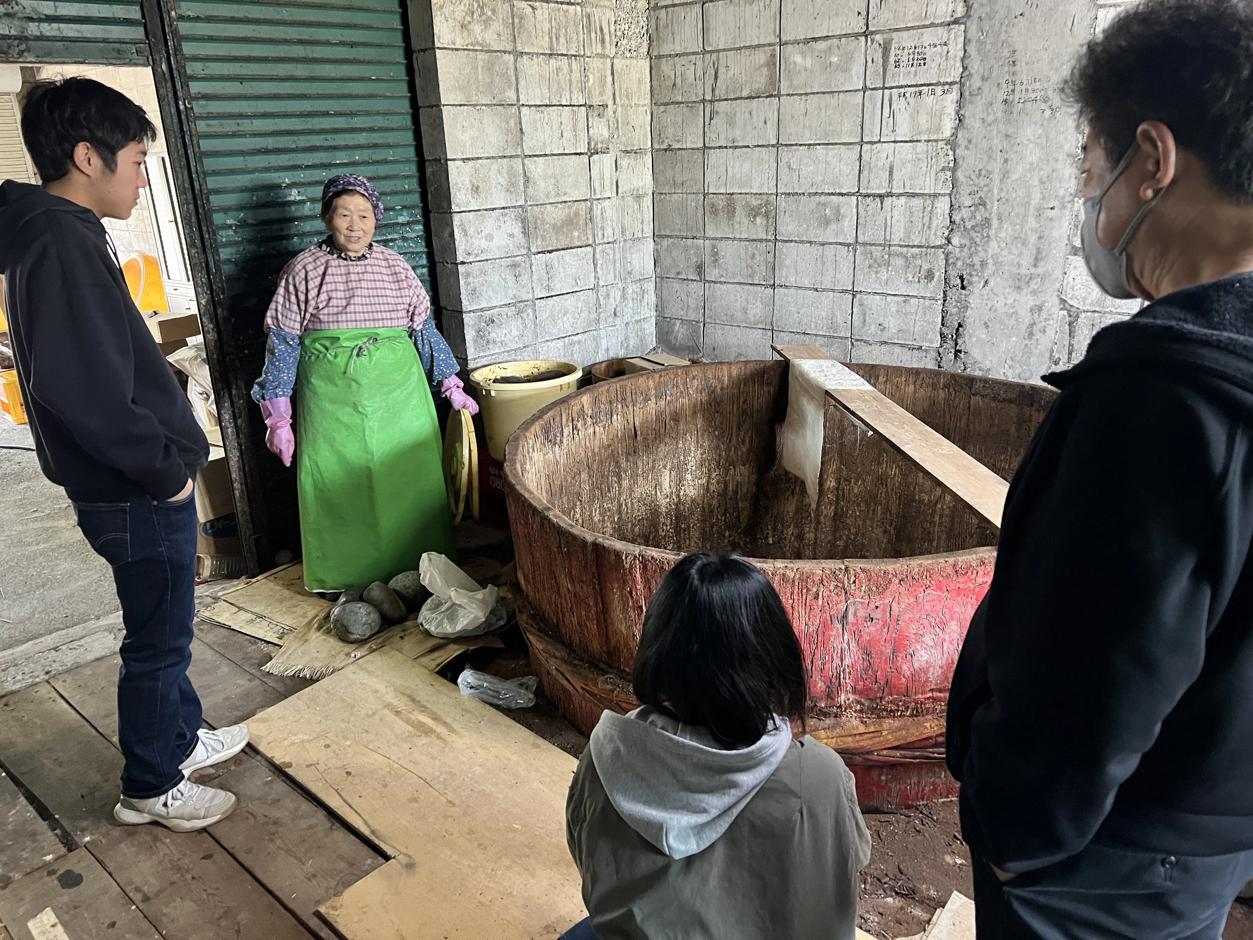 倉庫を案内されてびっくり!当時の巨大な味噌樽を見せていただきました。
