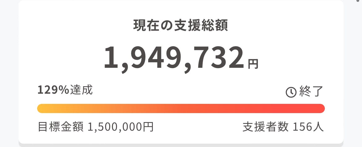 無事目標は達成でき、最終的に集まった金額は【1,949,732】円となりました。