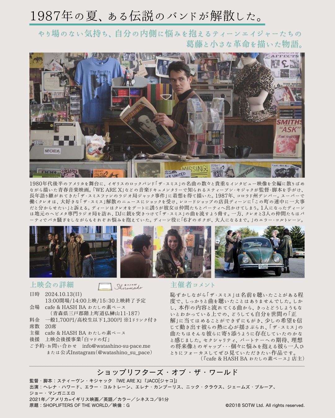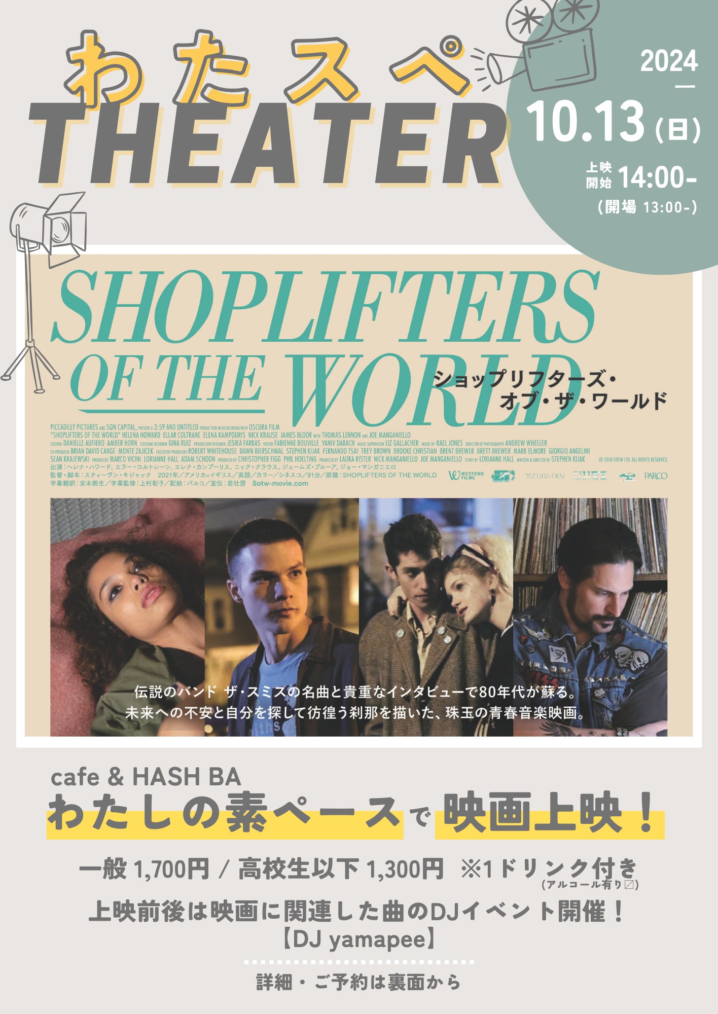 映画に合わせてザ・スミスの楽曲を中心に回していただけるようなので、ドリンク片手にぜひゆっくり音楽も楽しんでください♩(豪華〜!)