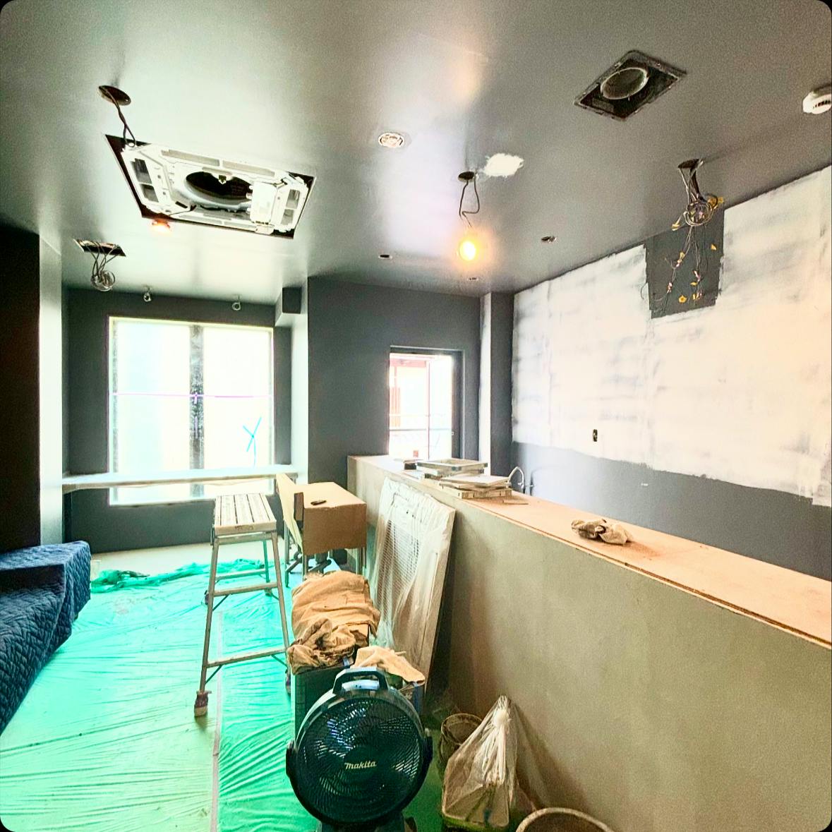 神楽坂の店舗は内装業者の方が1.5倍速で作業を進めてくださっているので、とても進みが早いです。