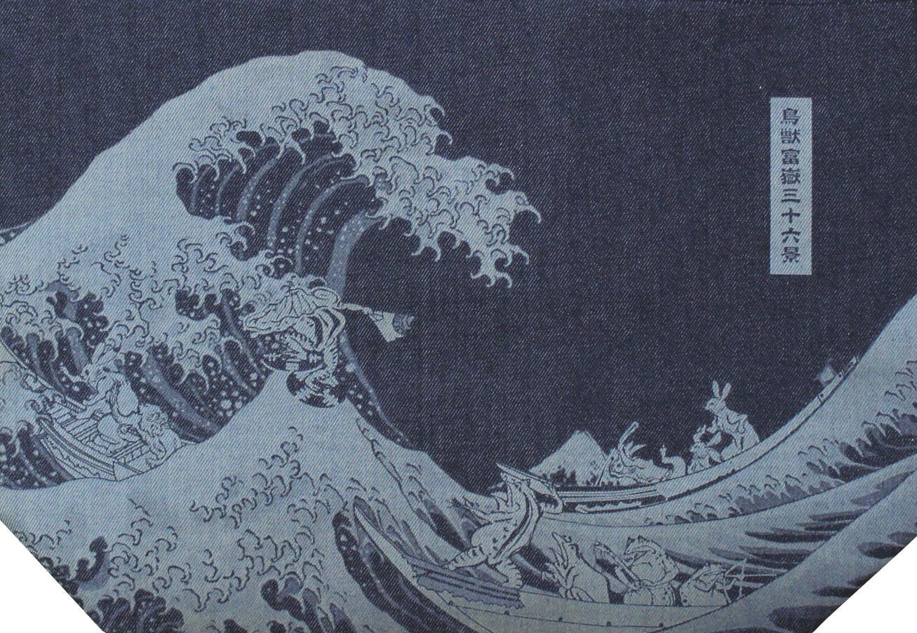 三十六景の中でも1番人気と言っても良い「神奈川沖浪裏」を元に鳥獣戯画を浪で遊ばせた図柄です。