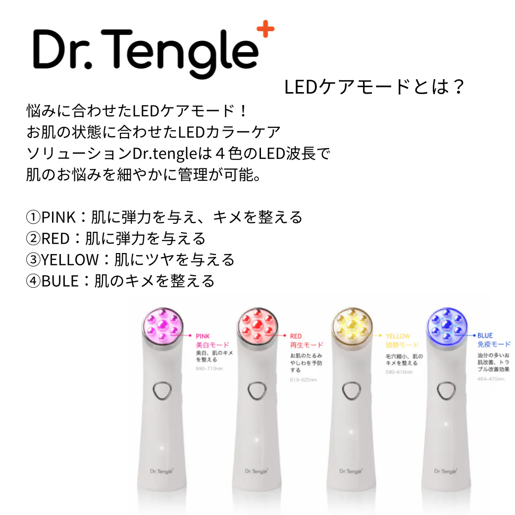 お肌の状態に合わせたLEDカラーケアソリューションDr.tengle+(ドクターテングル)は4色のLED波長で肌のお悩みを細やかに管理が可能になる機能です。