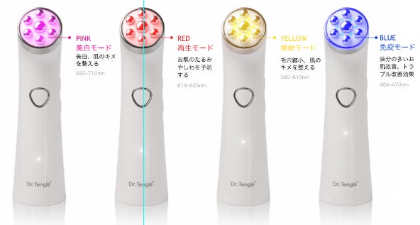 お肌の状態に合わせたLEDカラーケアソリューションDr.tengle+(ドクターテングル)は4色のLED波長で肌のお悩みを細やかに管理が可能になる機能です。