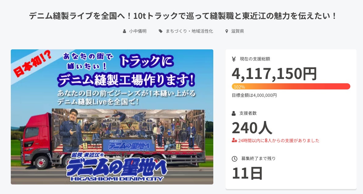 デニム縫製ライブを全国へ!10tトラックで巡って縫製職と東近江の魅力を伝えたい!