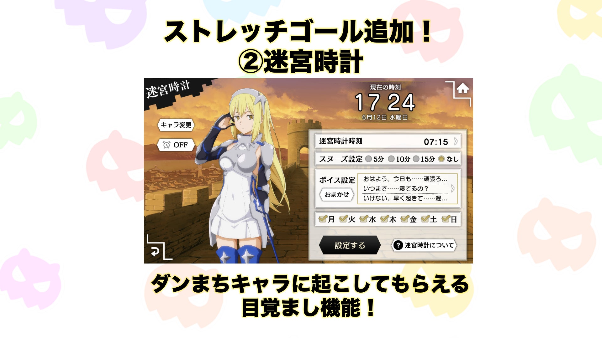 メモリアルアプリにも、「キャラ名簿」「迷宮時計」の機能が追加になります。