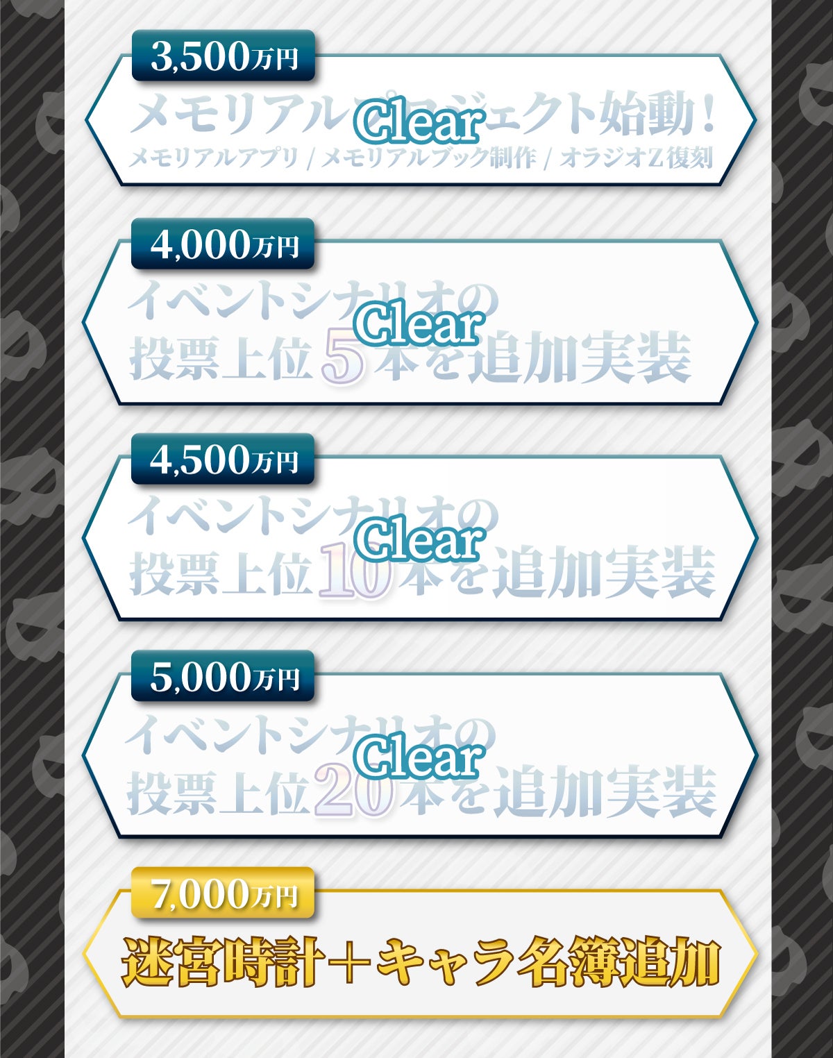 もういちど、ユーザーの皆様と、オラジオパーソナリティと、そして開発陣で、一緒に作り上げてきたダンメモを振り返りたい。本クラウドファンディングを通じて、「オラジオZ」の1日限りの復活を目指します。