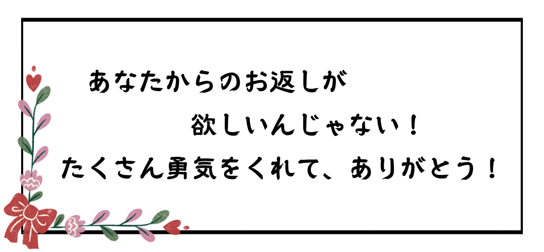 私は私ができる形でこれから先も恩返しし、循環させると、お約束致します!