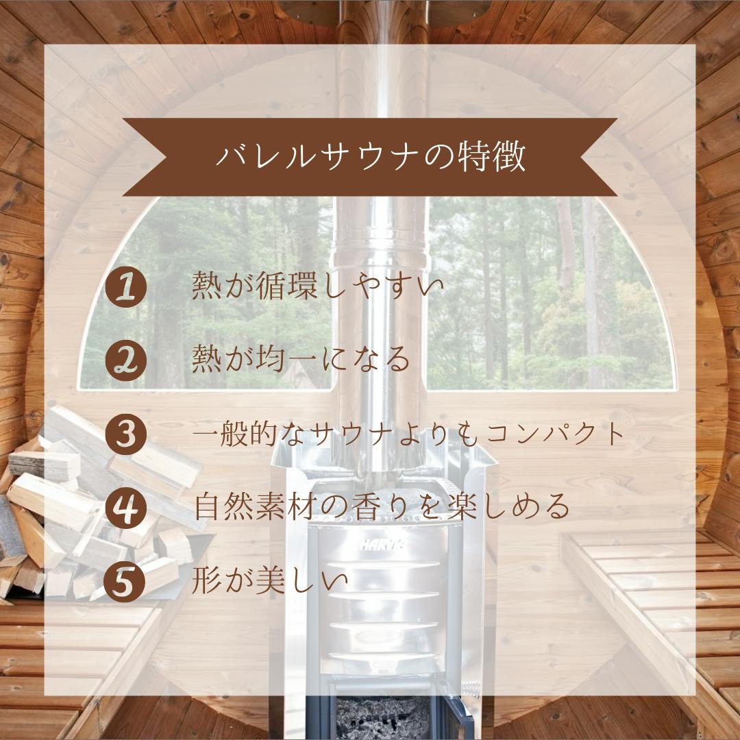バレルサウナは、その名前の通り、樽(バレル)のような形状をしています。