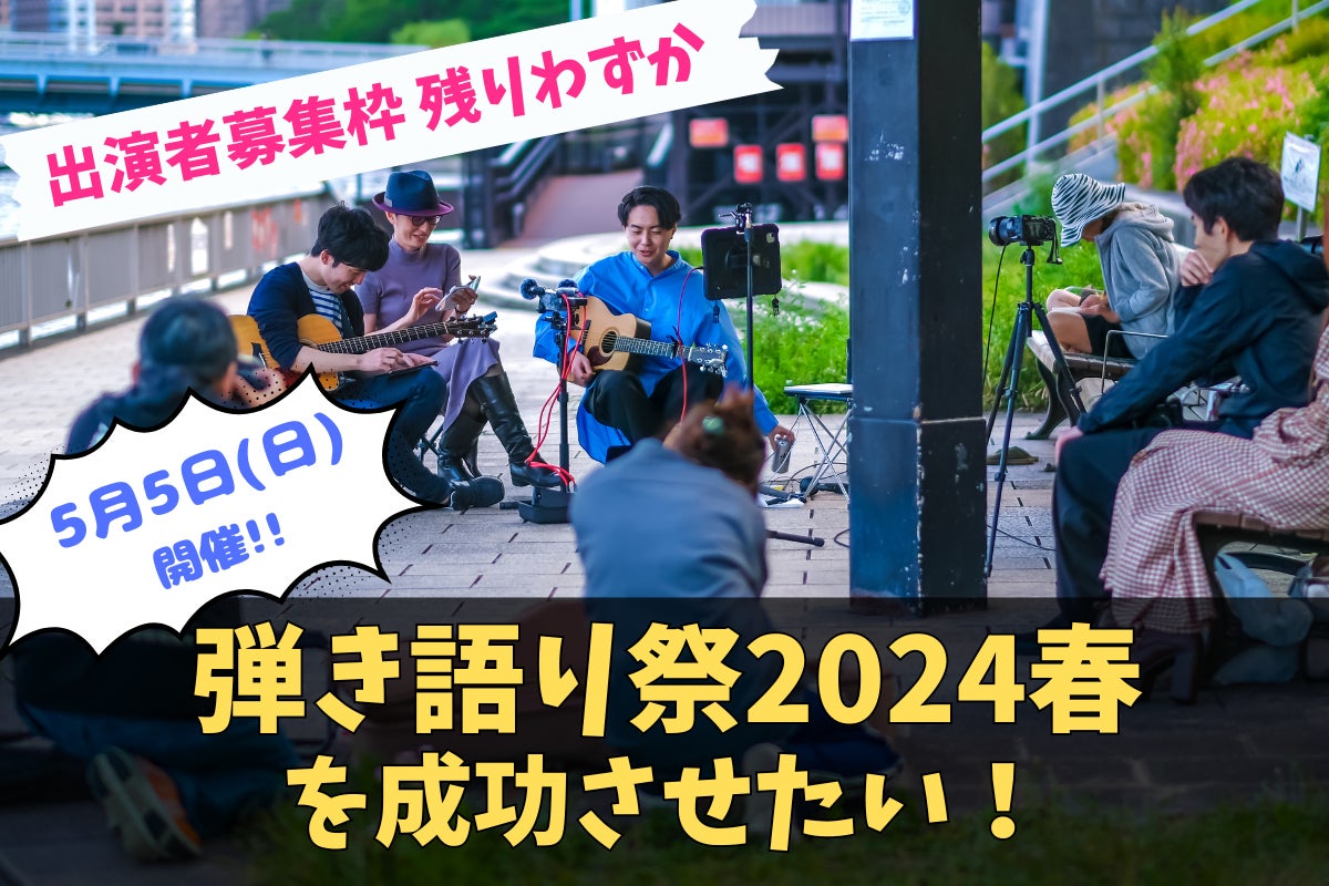 「5月5日(日)に、隅田川テラス(東京都)にて開催する『弾き語り祭2024春』の開催資金を支援してください」というお願いにあがりましたヨシナガ タケシです。