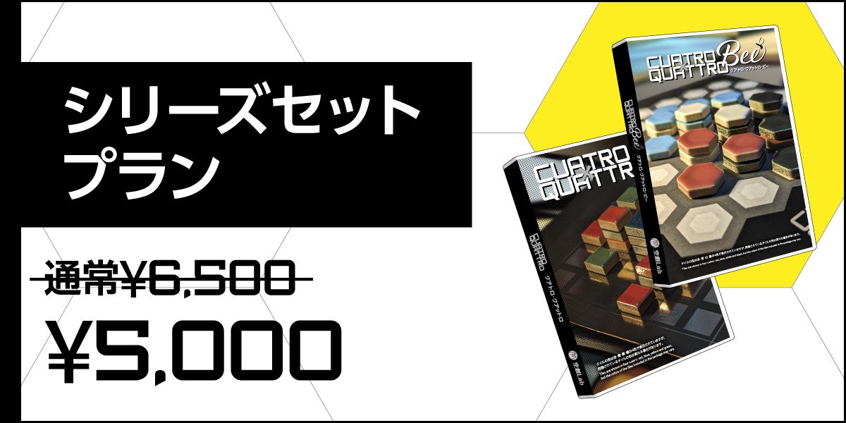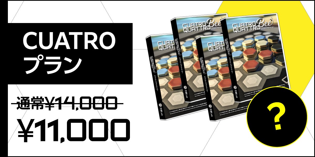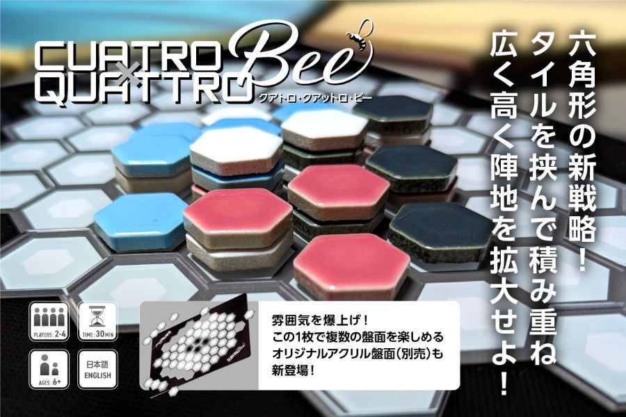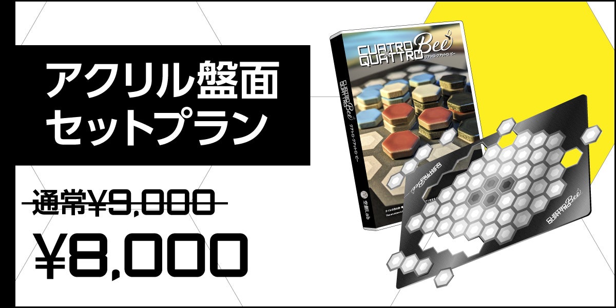 新作ゲーム「CUATRO×QUATTRO-Bee(クアトロ・クアットロ・ビー)」本体1セットとオリジナルアクリル盤面とのセットのプランです。