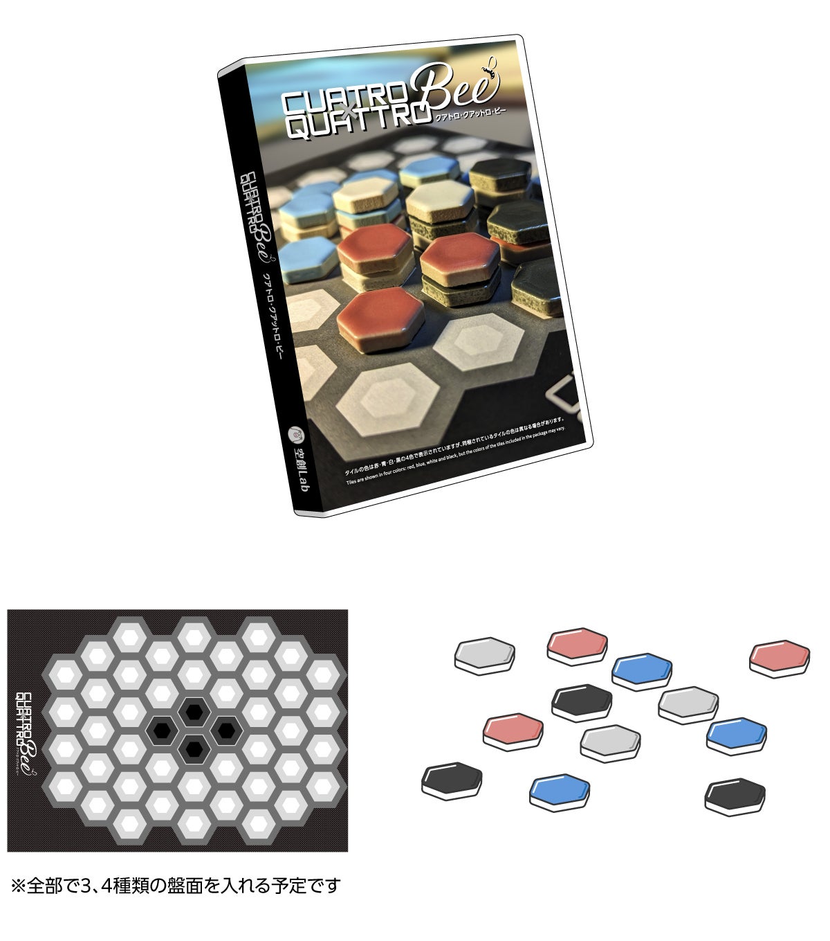 本プロジェクトの開催中に行われる「ゲームマーケット2024春(4月27~28日)」では、本作「CUATRO×QUATTRO-Bee(クアトロ・クアットロ・ビー)」も販売予定です。