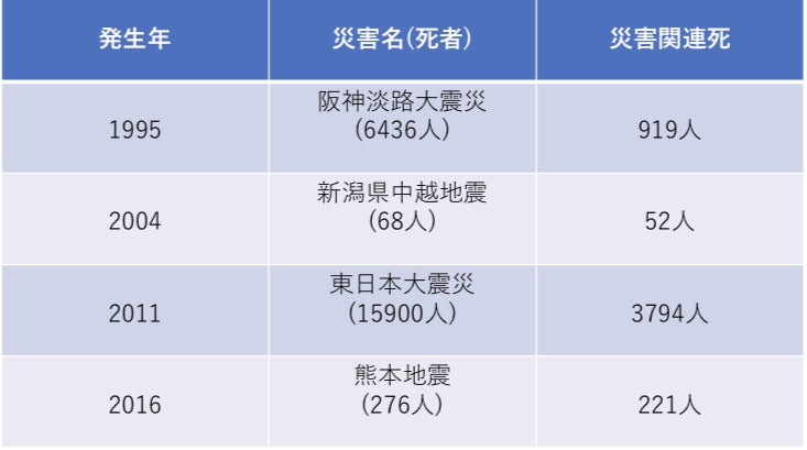 そして、建物倒壊などの直接死ではなく、生活環境の悪化やストレスなどが原因による災害関連死も相次いできます。