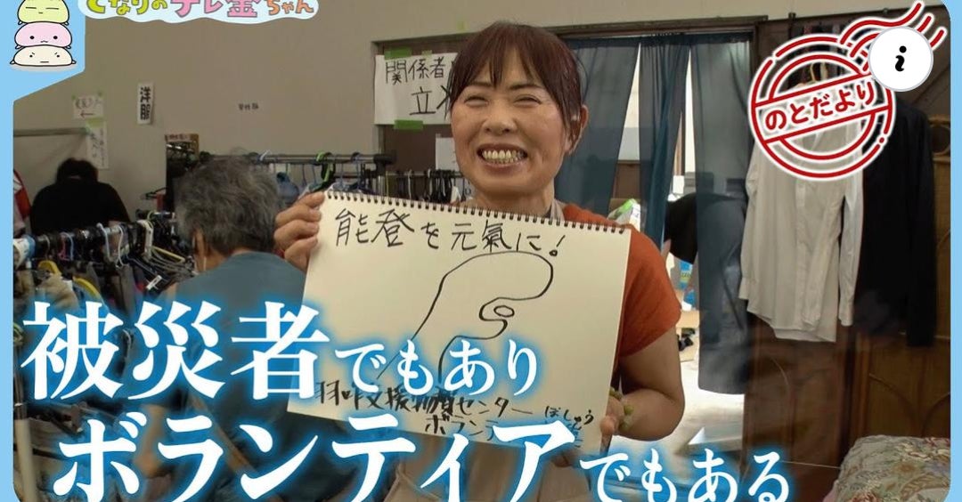 のと支援物資センター羽咋で、テレビの取材がありました。