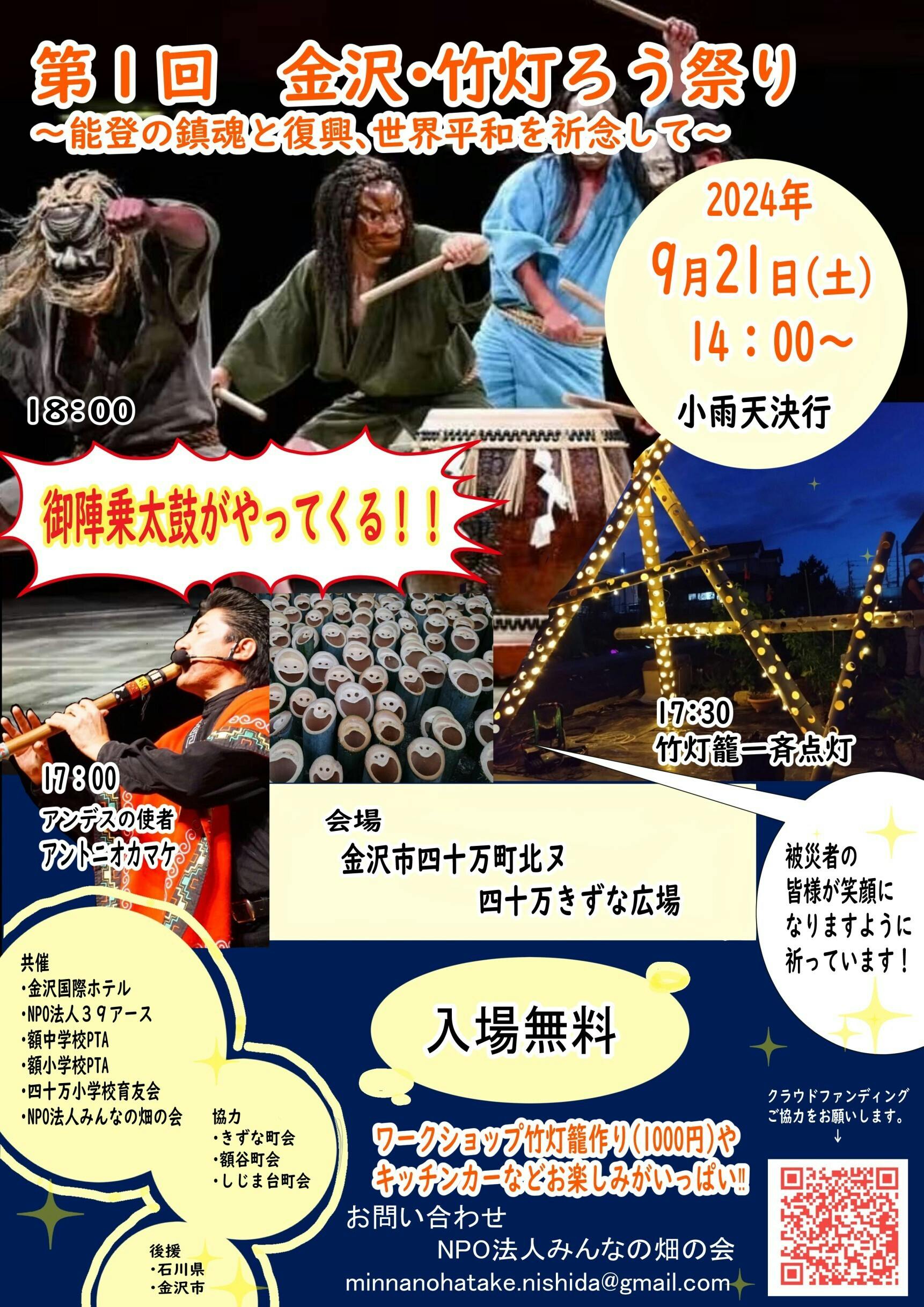 協賛企業名を彫刻した竹灯籠を祭り会場に展示させていただきます。お問い合わせは minnanohatake.nishida@gmail.com までお願いいたします。